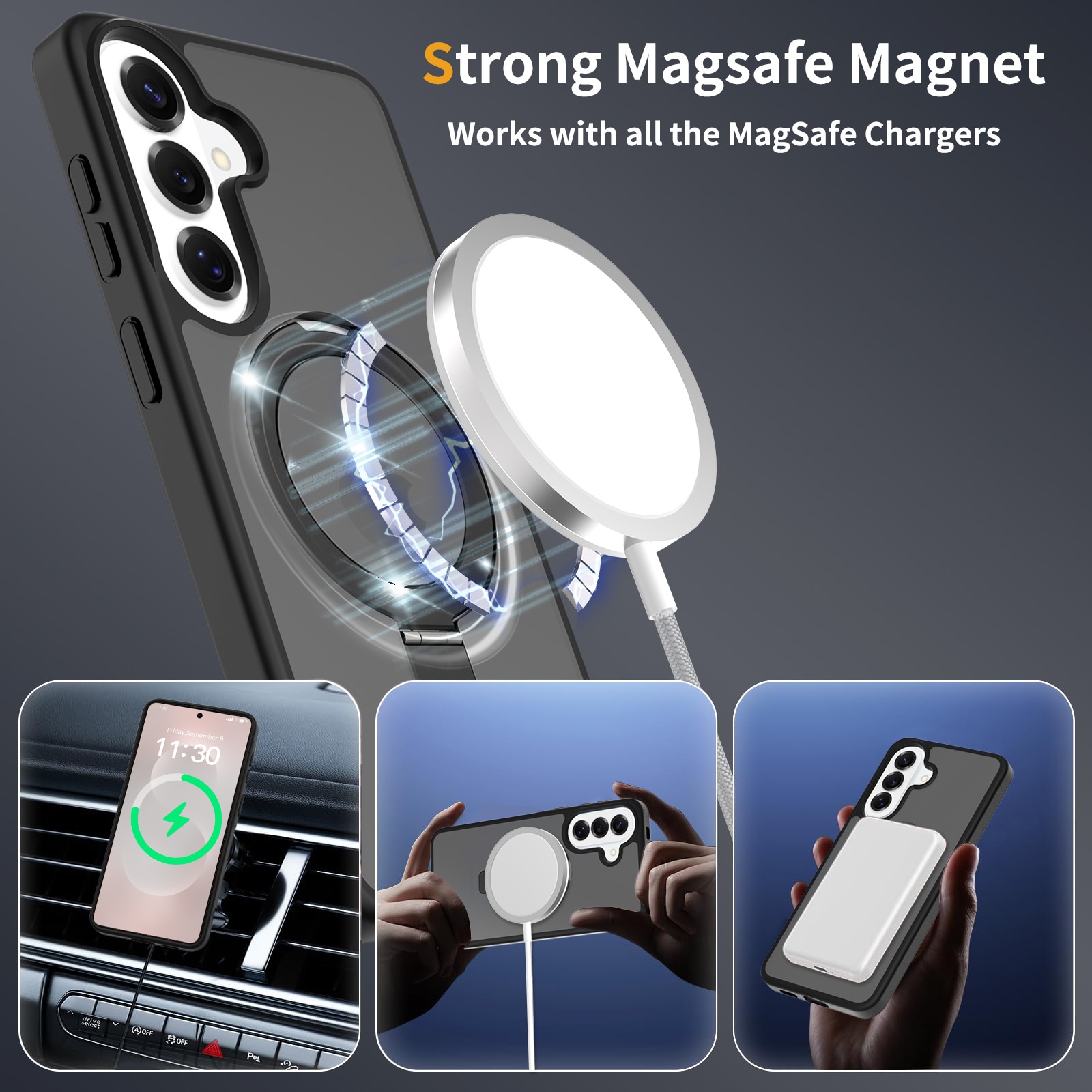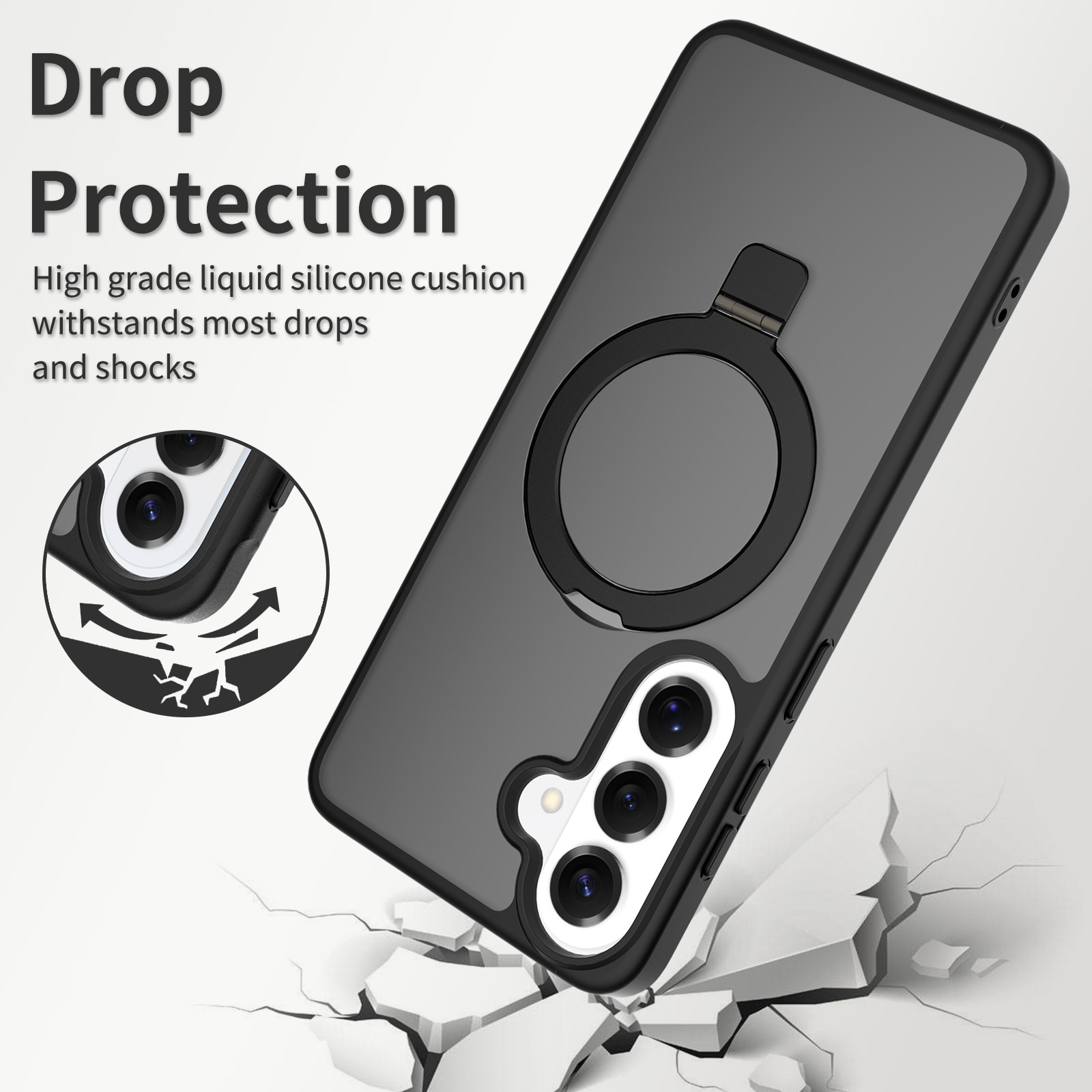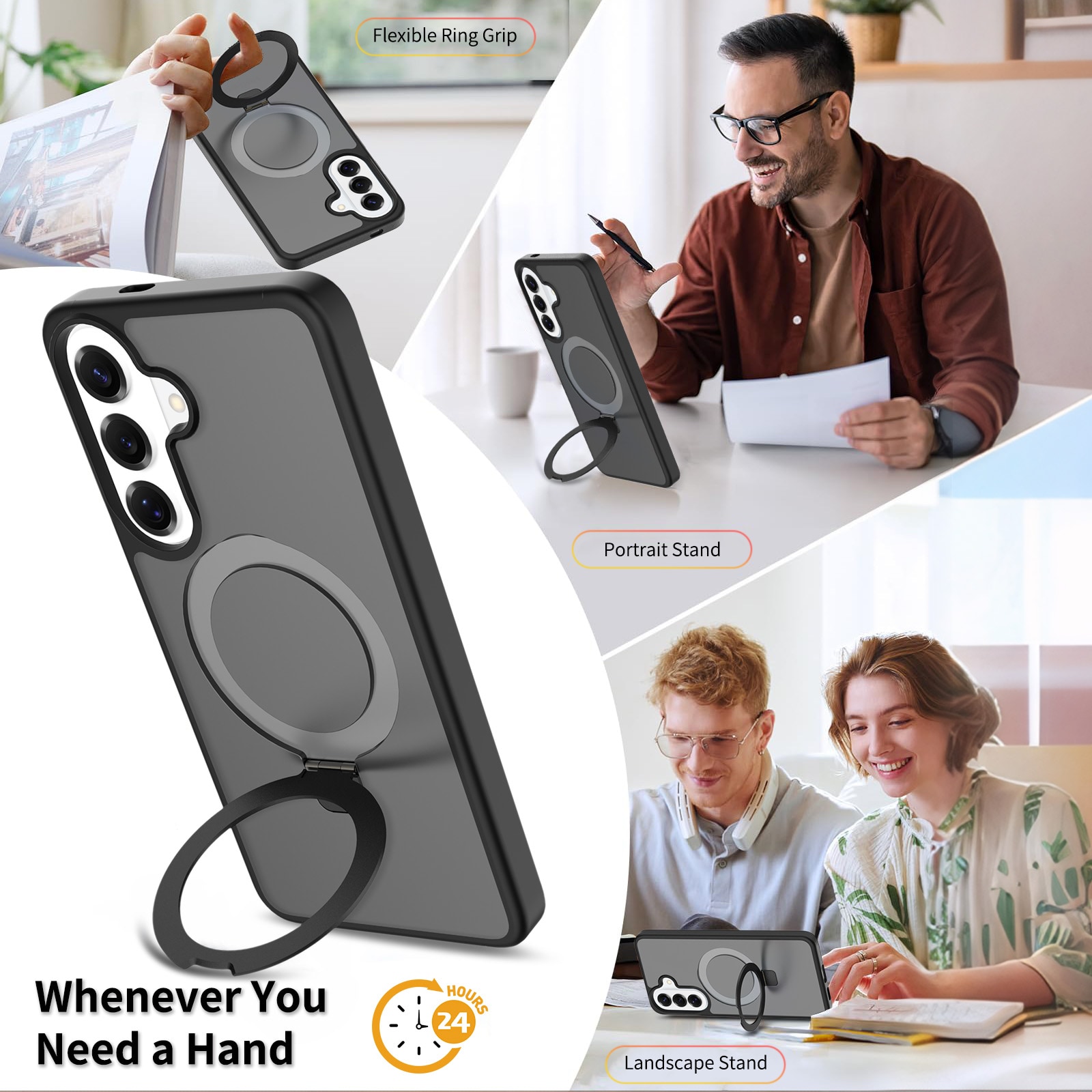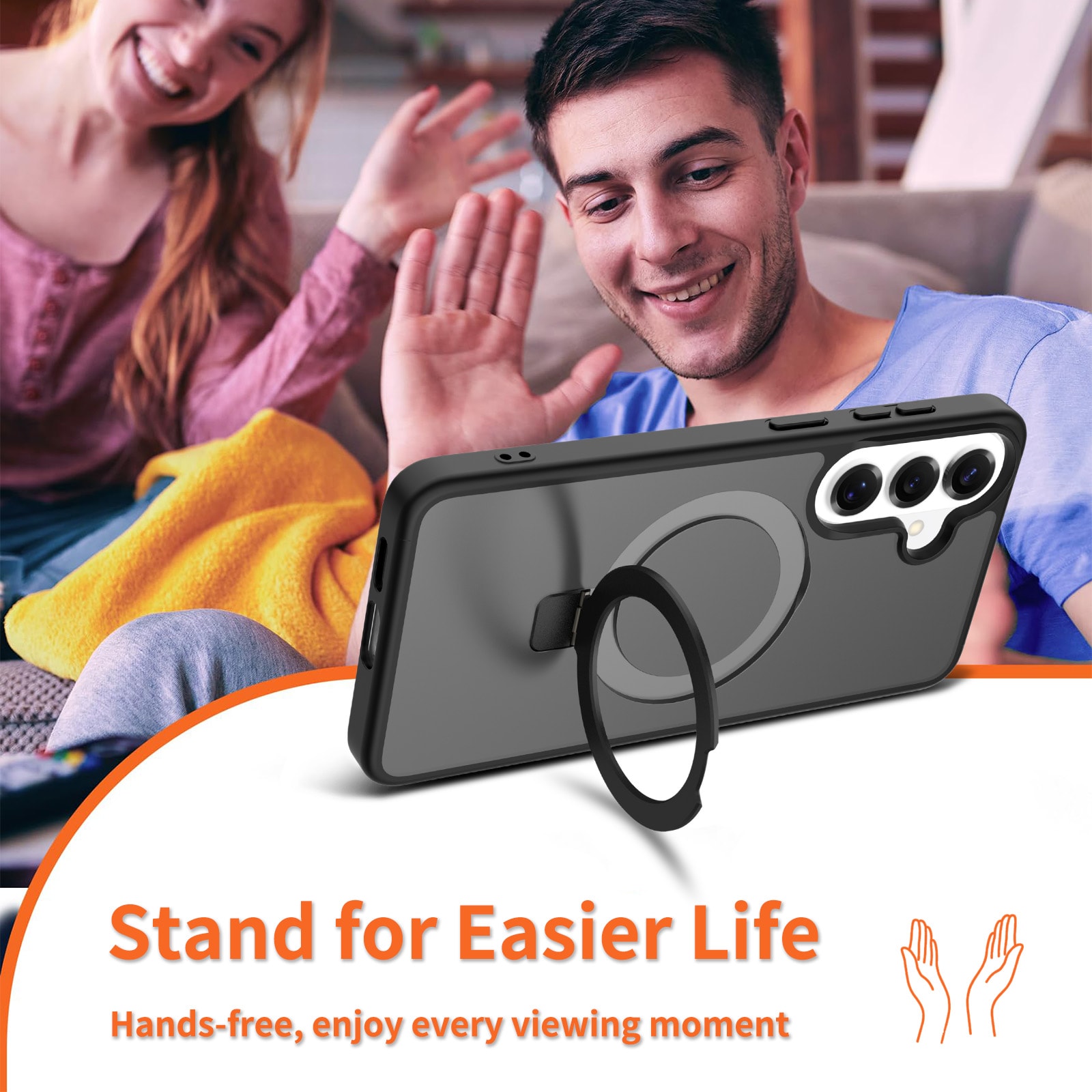 Mobilskal med utfällbar magnetisk ring till Samsung Galaxy S26 Plus. För bästa skydd mot stötar och fall är skalet tvådelat med en TPU-kärna och ett hölje i hårdplast. Ringen på baksidan är magnetisk och kan användas tllsammans med MagSafe-kompatibla tillbehör såsom laddare och korthållare. Ringen kan även bilda ett ställ för att se på film, klipp eller för att spela.