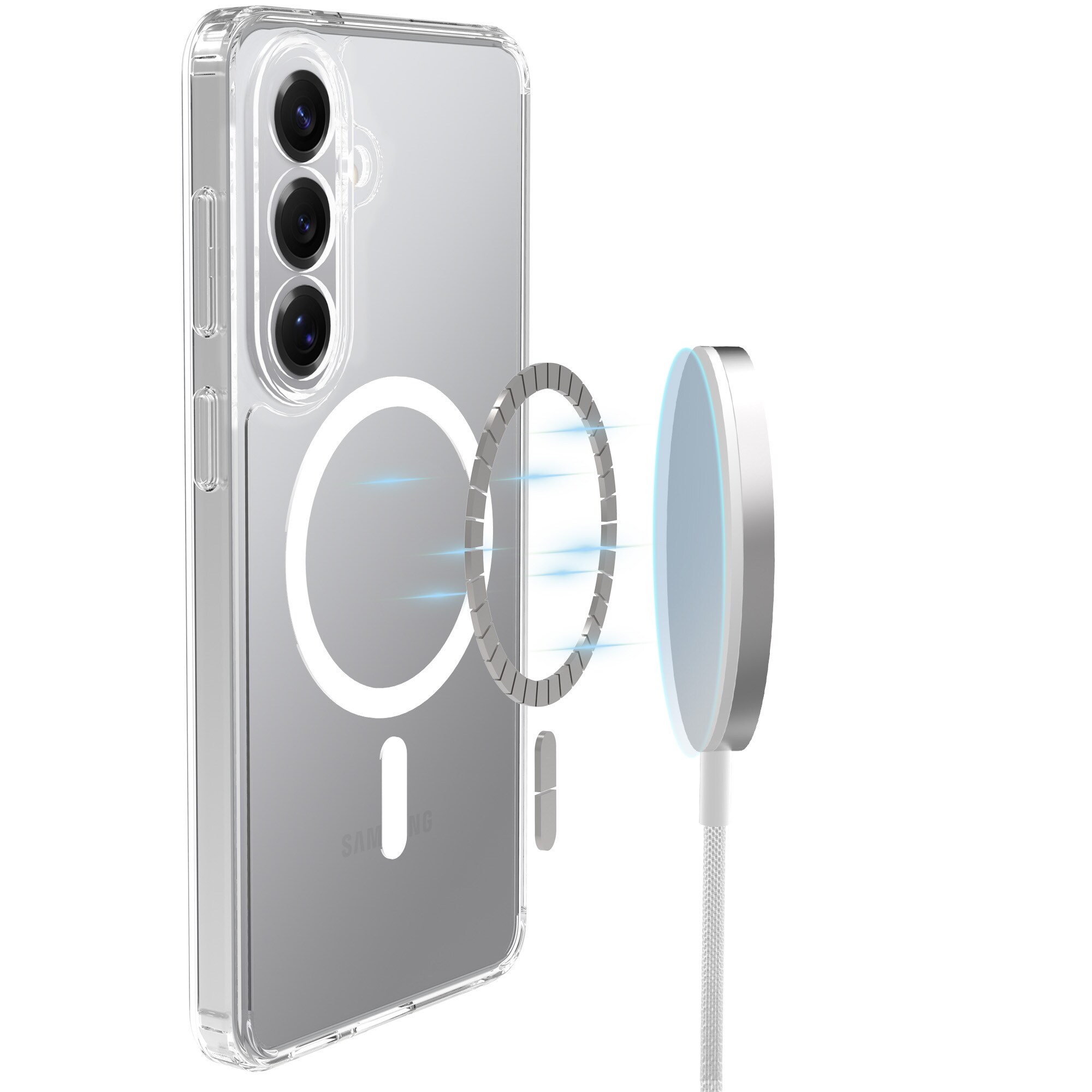 Hybridskal med magnetisk ring till Samsung Galaxy S26 Plus. För bästa skydd mot stötar och fall är skalet tvådelat med en TPU-kärna och ett hölje i hårdplast. Ringen på baksidan är magnetisk och kan användas tllsammans med MagSafe-kompatibla tillbehör såsom laddare och korthållare.