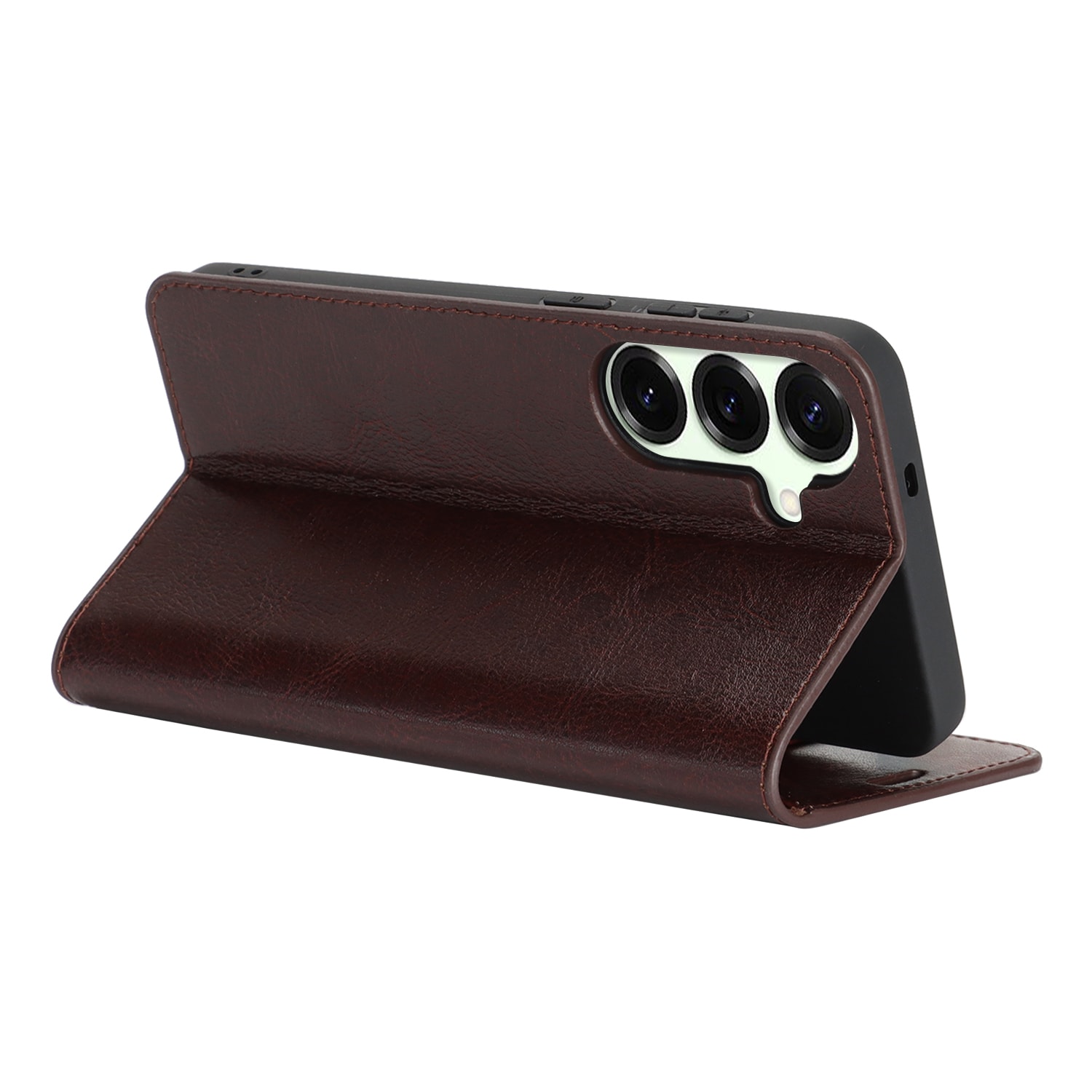 Skydda din Samsung Galaxy S26 Plus med ett fodral i äkta läder. Trots sin tunna och smarta design har fodralet 3 stycken kortfack och 1 sedelfack på insidan av locket. Telefonen klickas i ett flexibelt skal för att sitta säkert fast i fodralet.