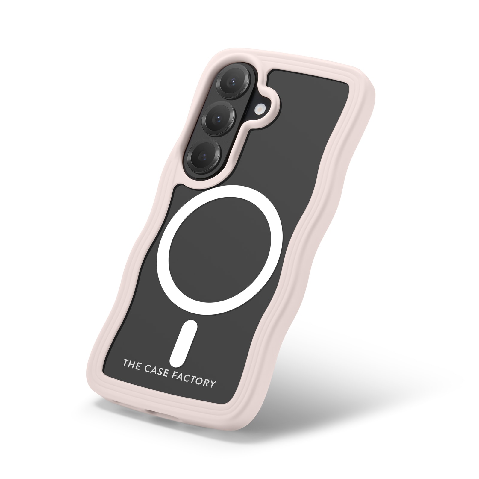 Elegant MagSafe-kompatibelt mobilskal med våginspirerad design till din Samsung Galaxy S26 Plus från The Case Factory. Skalet är tillverkat i stöttålig hårdplast och har en mjuk, flexibel TPU-ram som ger ett unikt och stilrent utseende. Den vågformade ramen gör skalet extra greppvänligt, ligger skönt i handen och minskar risken för att du tappar telefonen.