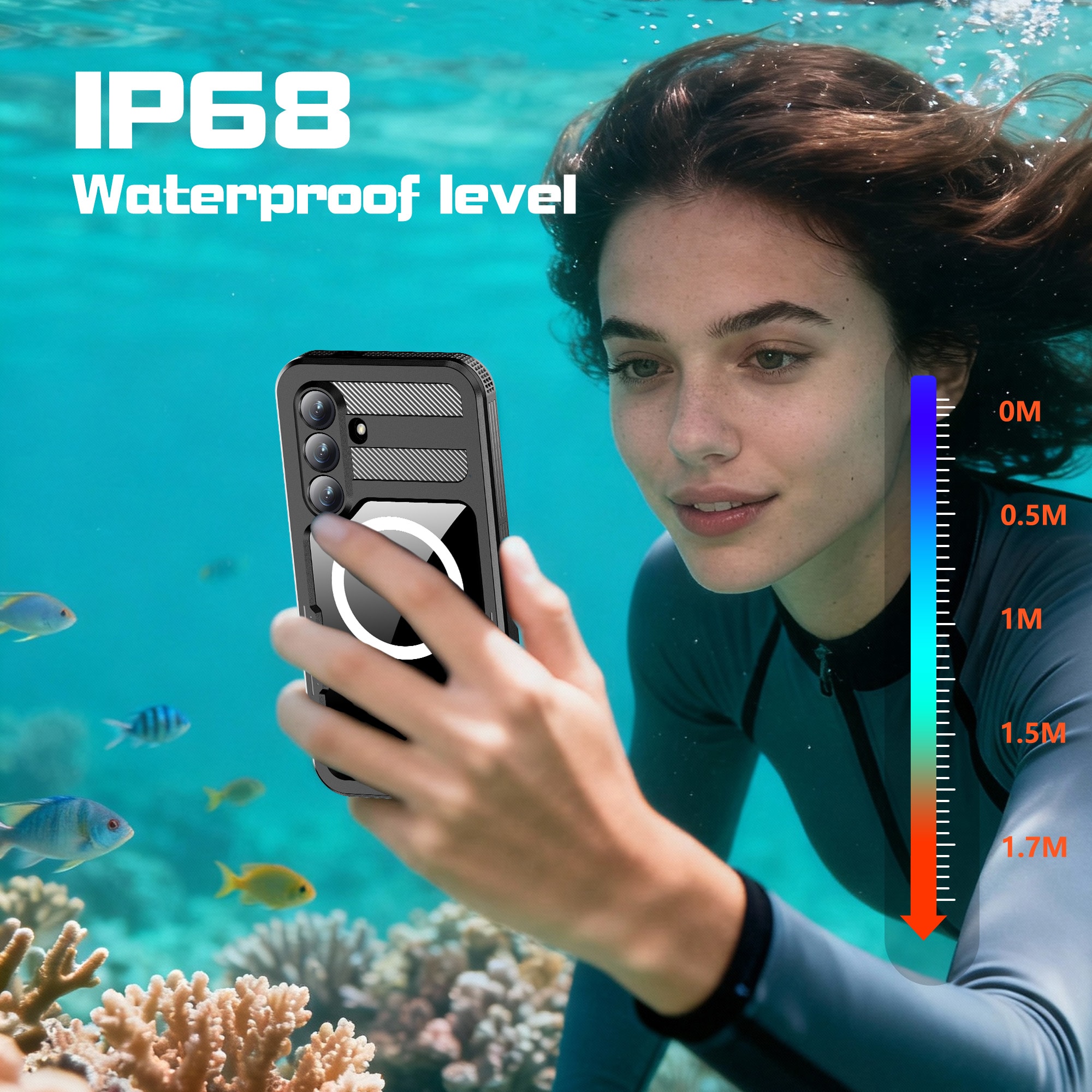 Skydda din Samsung Galaxy S26 Plus med detta vattentäta hybridskal kompatibelt med MagSafe. Skalet har en tvådelad konstruktion i TPU och polykarbonat, med inbyggt skärmskydd och riktigt stöttåliga kanter. Med detta skal är du fullt utrustad för alla typer av aktiviteter, oavsett om det är på stranden, i skidbacken eller för olika extremsporter. Skalet skyddar, förutom mot vatten, även mot damm, sand och är riktigt stöttåligt för när telefonen råkar falla ur händerna på dig.