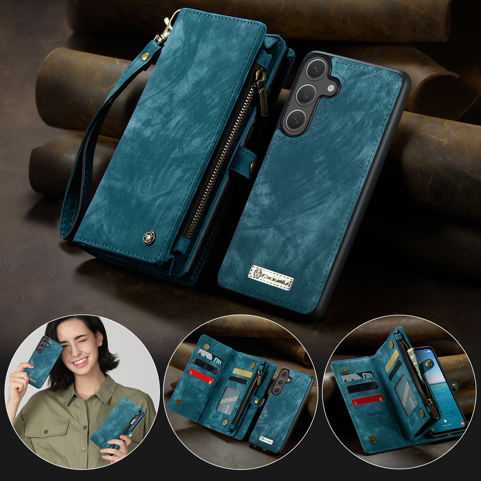 Mobilfodral med magnetskal och plånbok med extra många kortplatser till Samsung Galaxy S26 Plus från CaseMe. Den rymliga plånboken har sedelficka, myntfack med dragkedja och ett flertal kortfack.