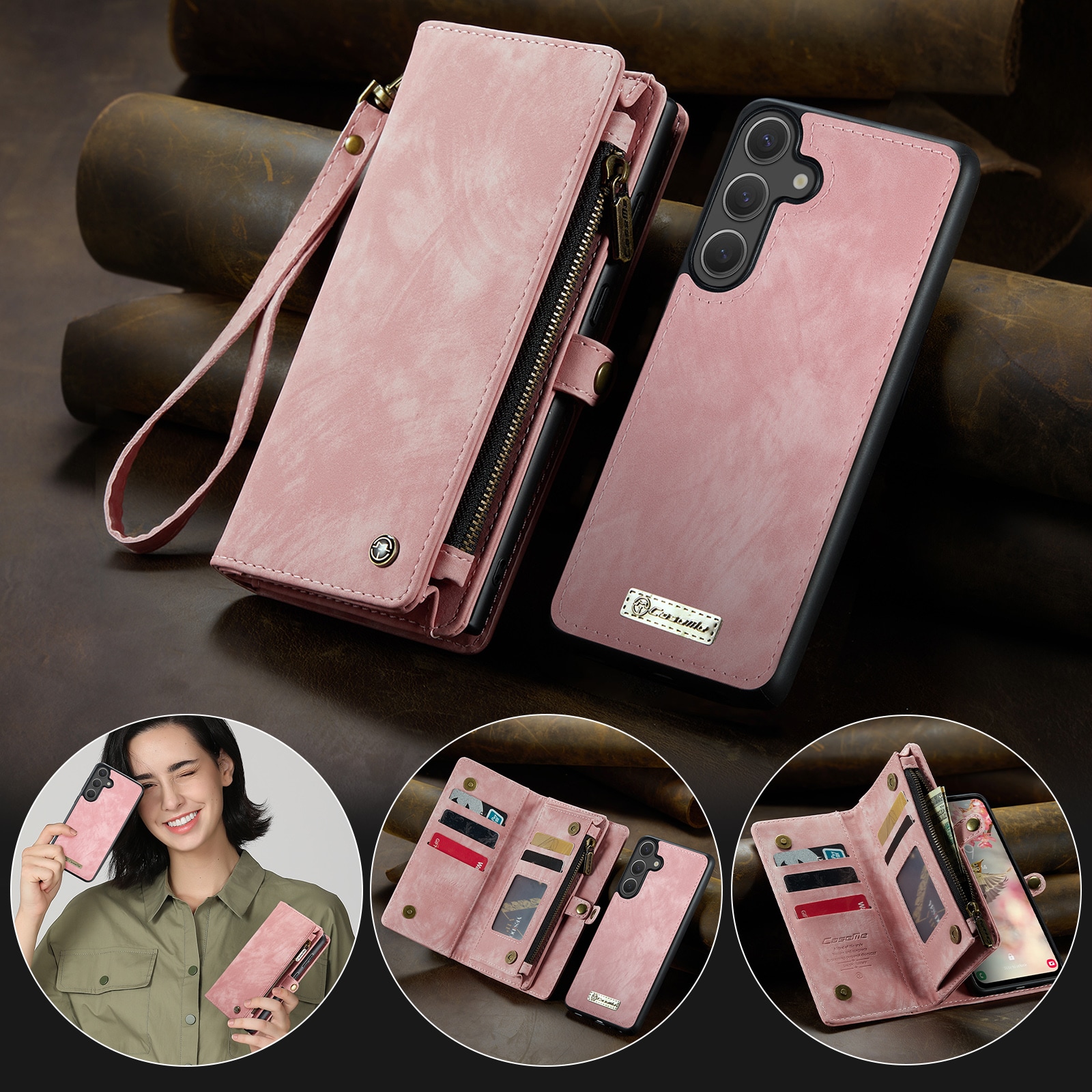 Mobilfodral med magnetskal och plånbok med extra många kortplatser till Samsung Galaxy S26 Plus från CaseMe. Den rymliga plånboken har sedelficka, myntfack med dragkedja och ett flertal kortfack.