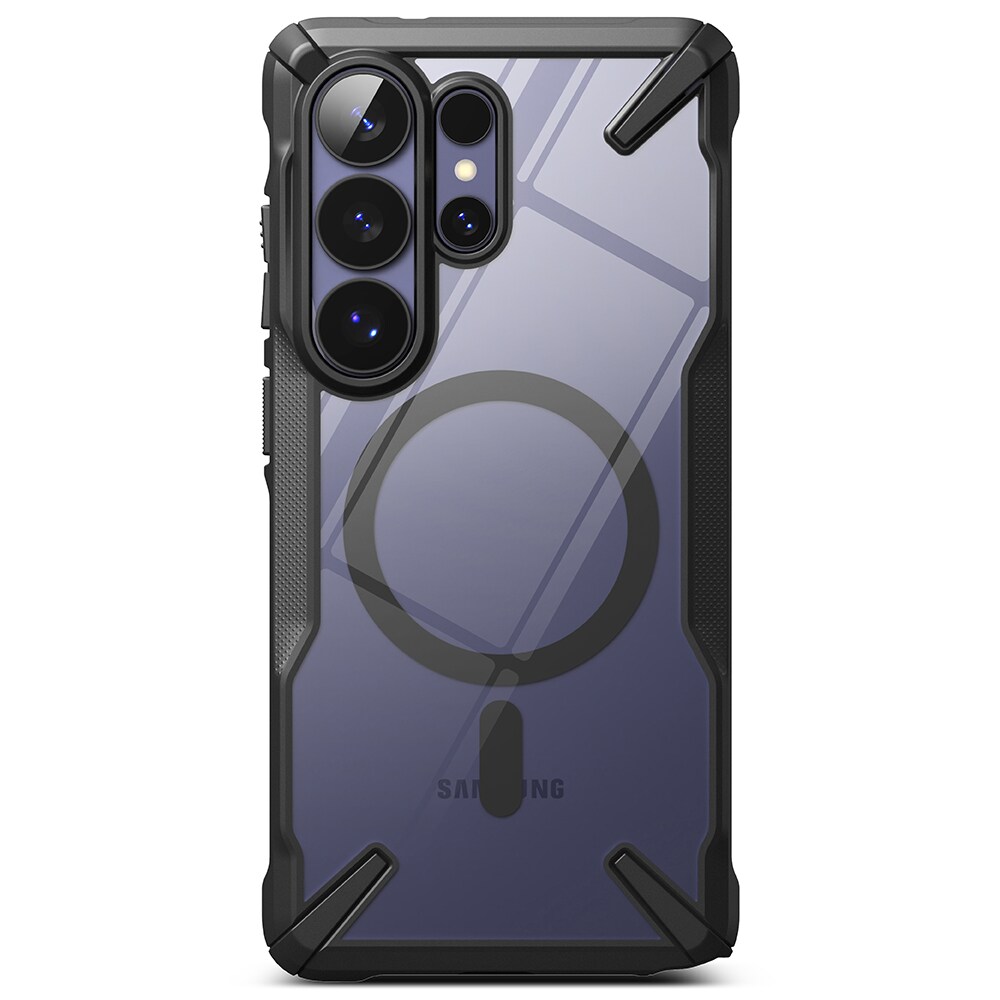Stötskyddande Fusion X skal med stöd för MagSafe från Ringke till Samsung Galaxy S26 Ultra. Ringke Fusion X ger din telefon riktigt bra stötskydd och en snygg look. För bästa skydd har skalet har en stötdämpande ram som absorberar fall och en baksida i hård polykarbonat.