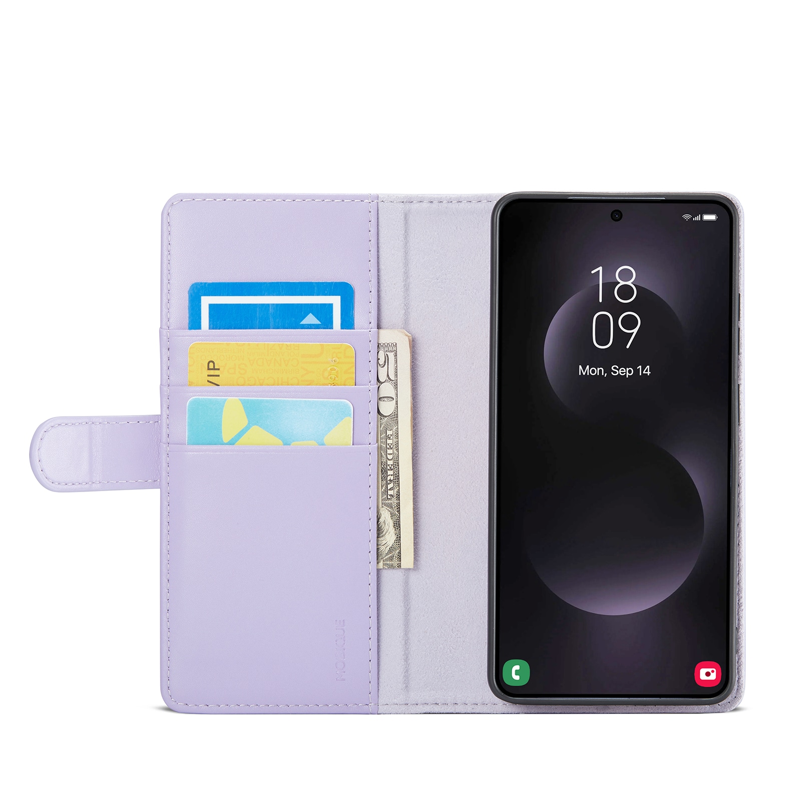 Mobilfodral i äkta läder till Samsung Galaxy S26 Ultra från Mobique. Fodralet skyddar runt hela din telefon och har en rymlig plånbok på insidan av locket. Plånboken är rymlig med tre kortfack och en sedelficka.