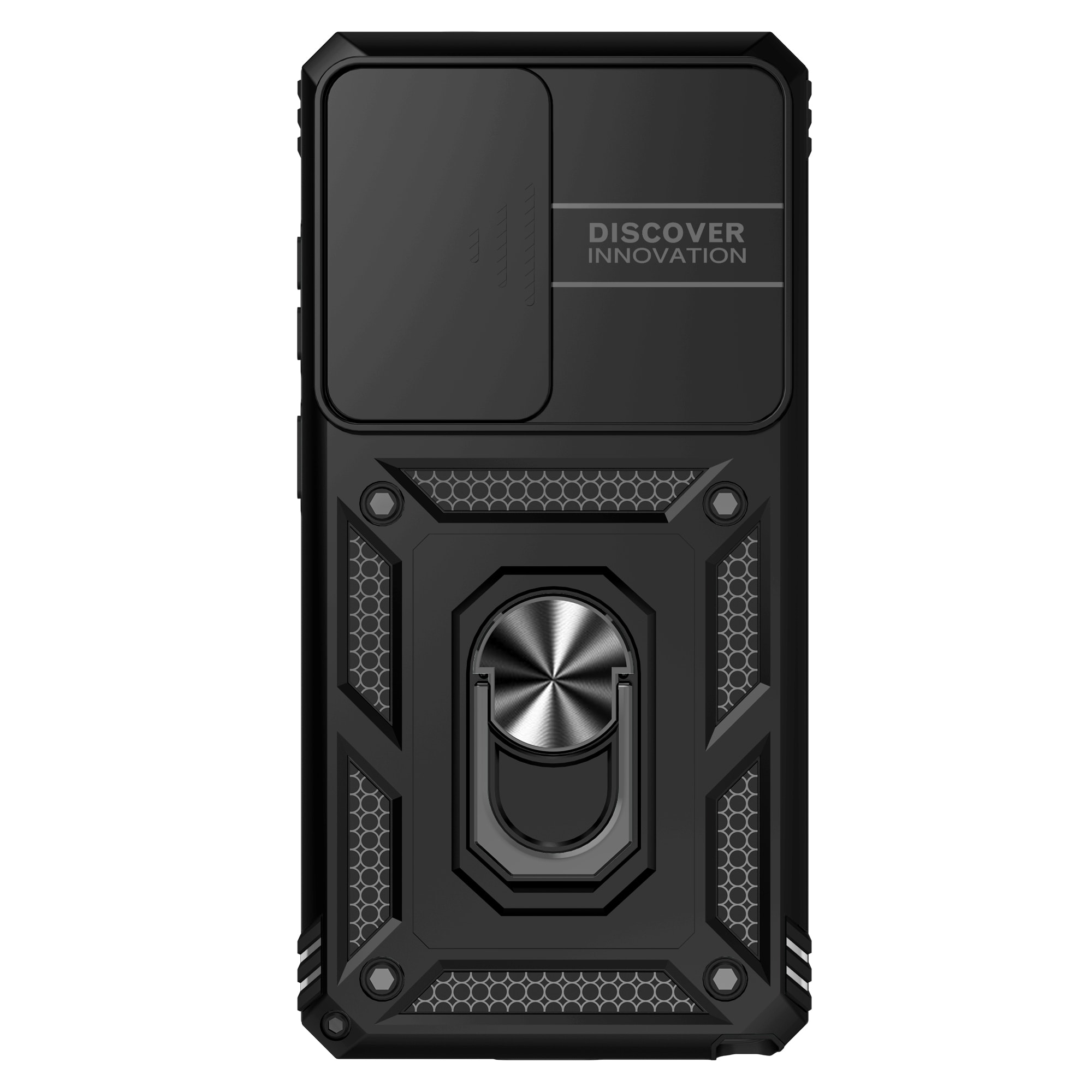 Mobilskal med utfällbar ring till Samsung Galaxy S26 Ultra. För bästa skydd mot stötar och fall är skalet tredelat med en TPU-kärna, ett hölje i hårdplast och en skyddande ram runt skärmen. Kameraluckan på baksidan håller dina linser säkra när du inte använder kameran, och ringen kan fällas ut för att ge ett bra grepp om telefonen. Ringen kan även bilda ett ställ för att se på film, klipp eller spel.