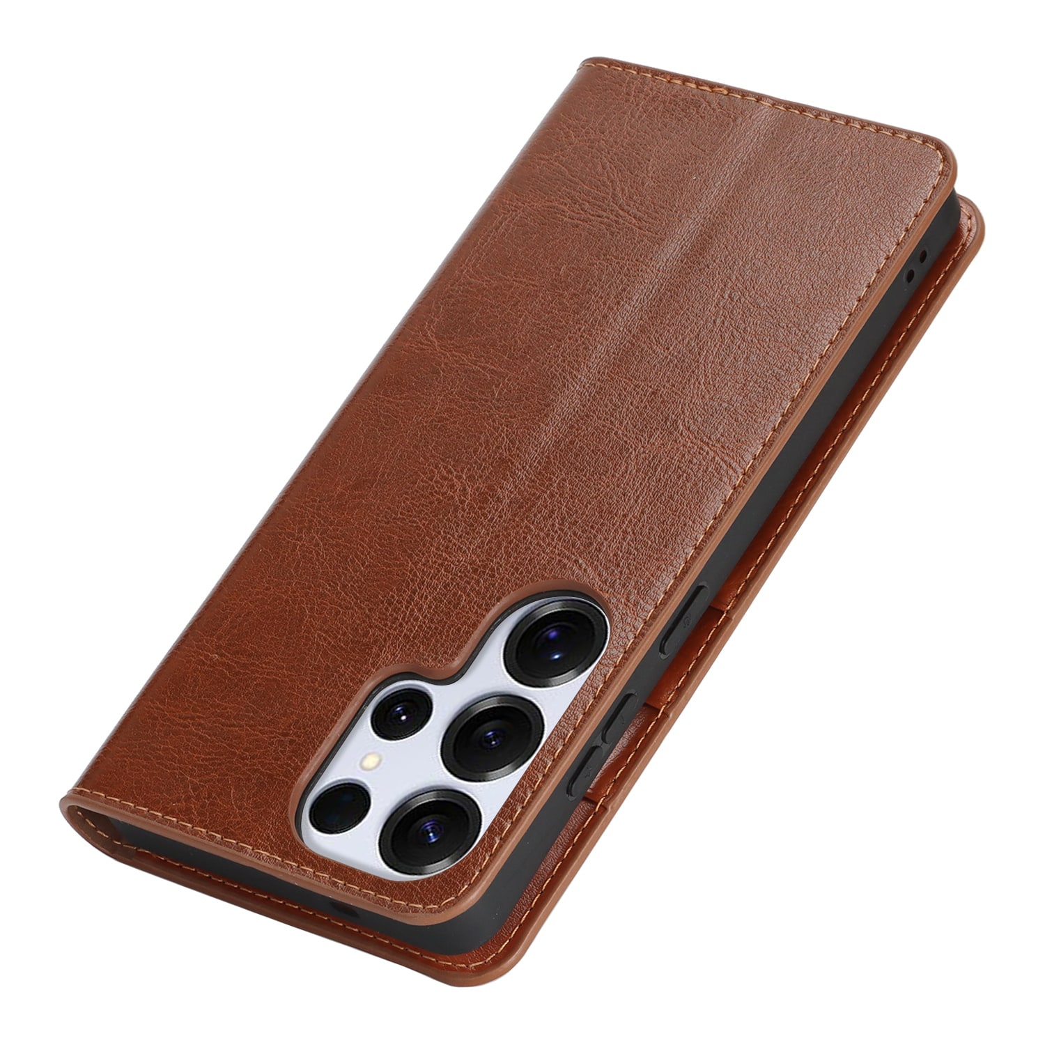 Skydda din Samsung Galaxy S26 Ultra med ett fodral i äkta läder. Trots sin tunna och smarta design har fodralet 3 stycken kortfack och 1 sedelfack på insidan av locket. Telefonen klickas i ett flexibelt skal för att sitta säkert fast i fodralet.