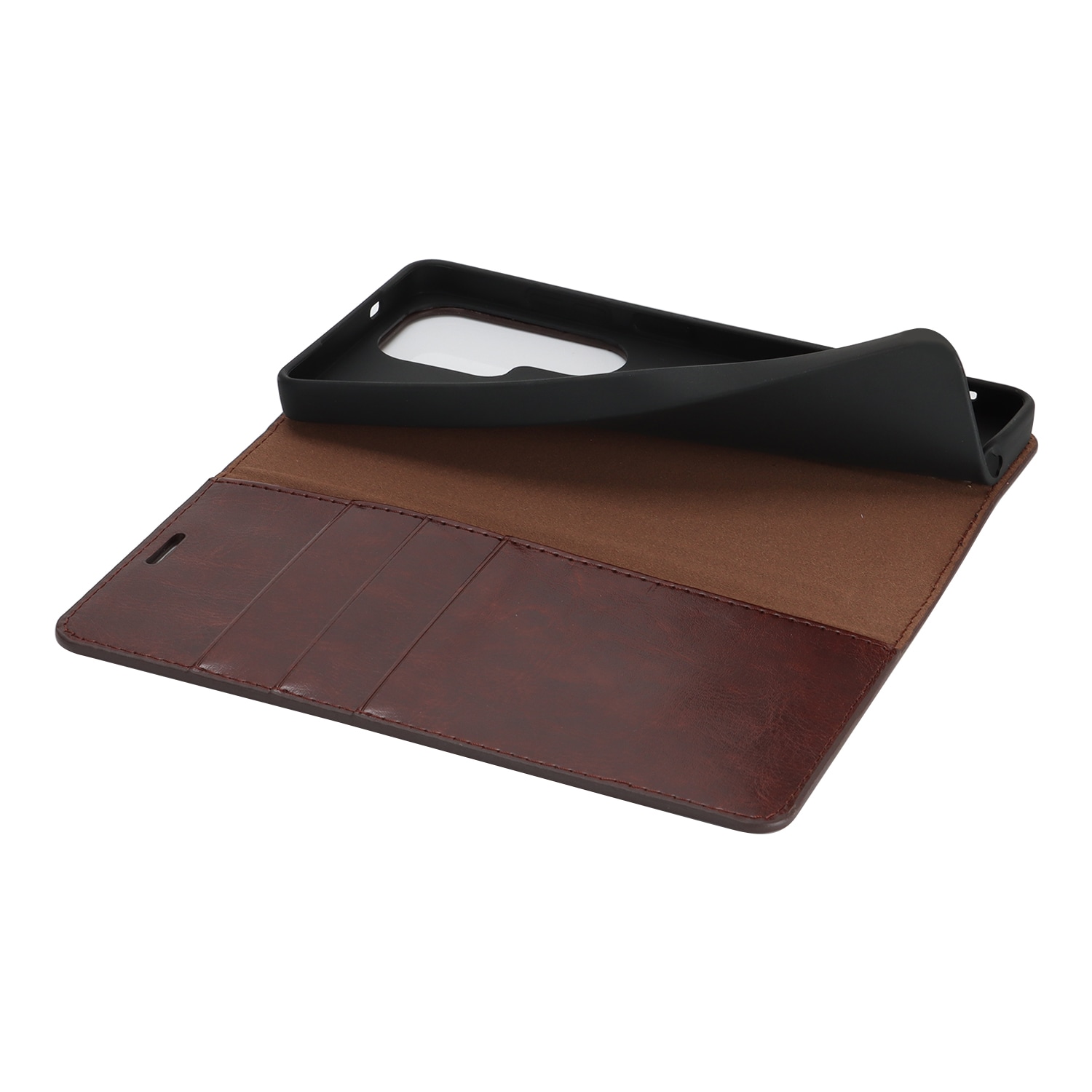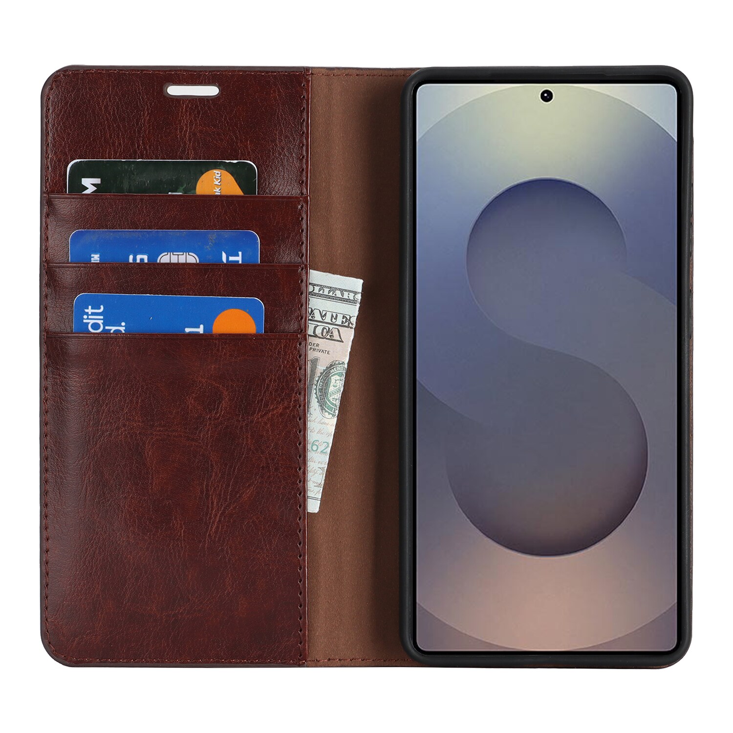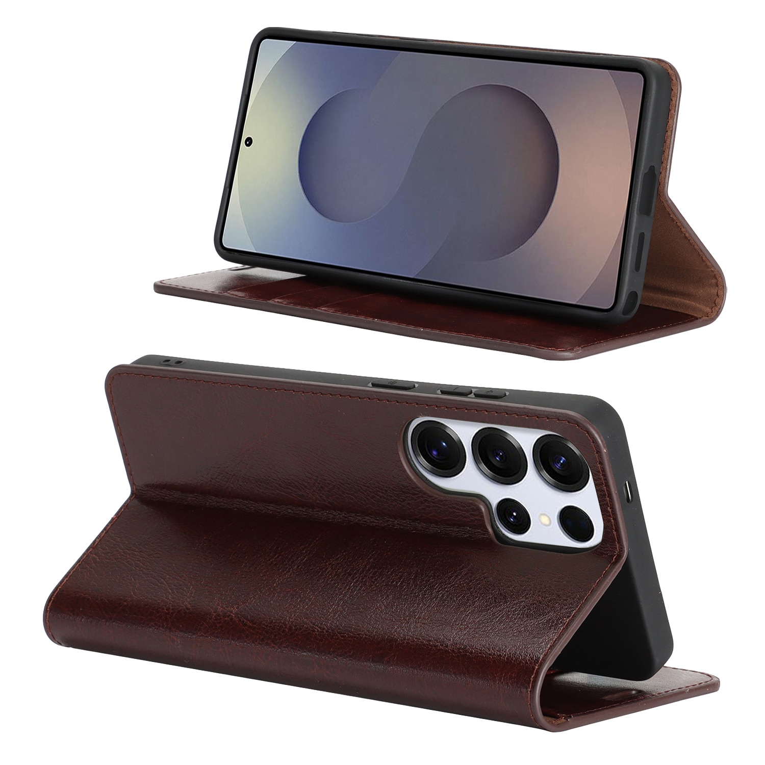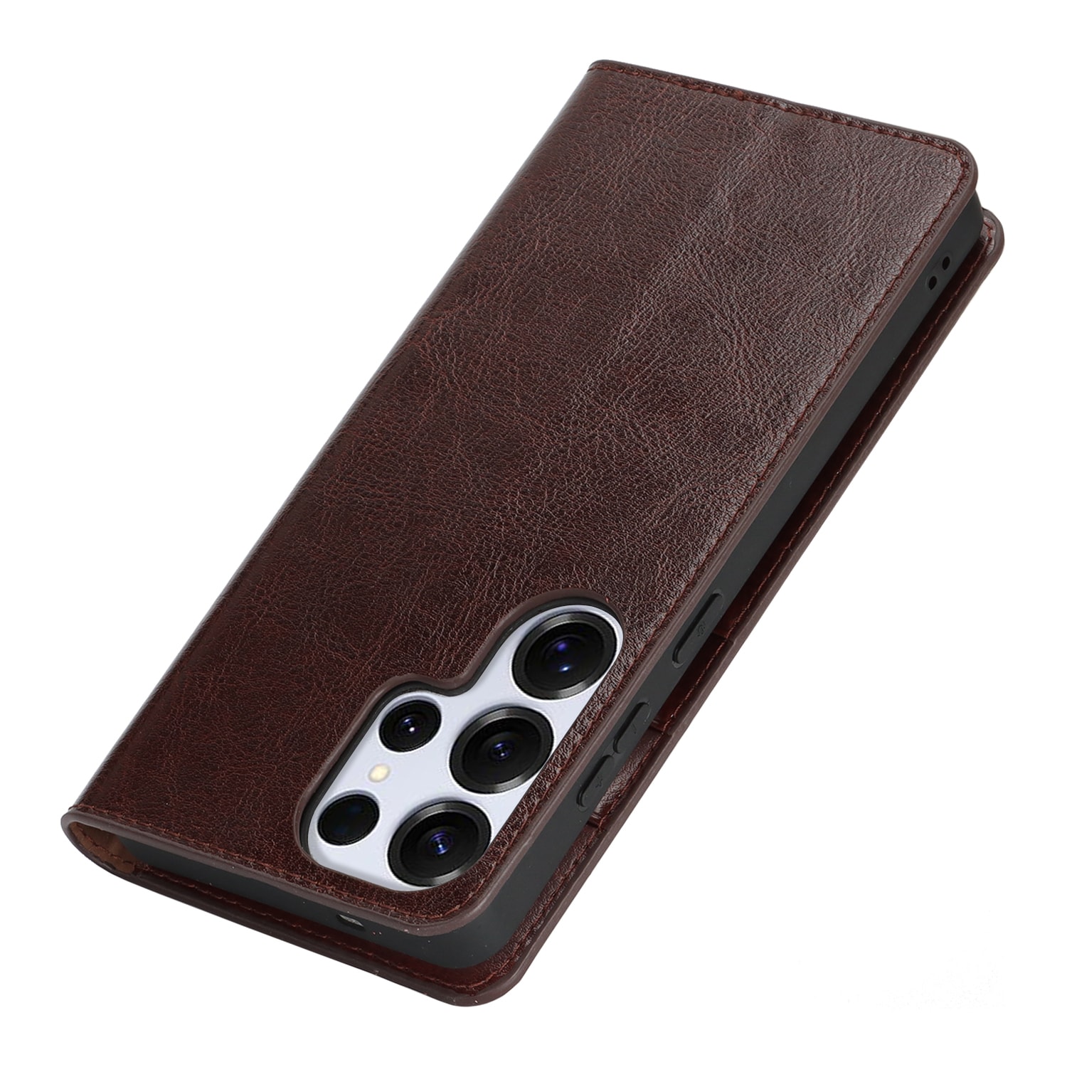 Skydda din Samsung Galaxy S26 Ultra med ett fodral i äkta läder. Trots sin tunna och smarta design har fodralet 3 stycken kortfack och 1 sedelfack på insidan av locket. Telefonen klickas i ett flexibelt skal för att sitta säkert fast i fodralet.