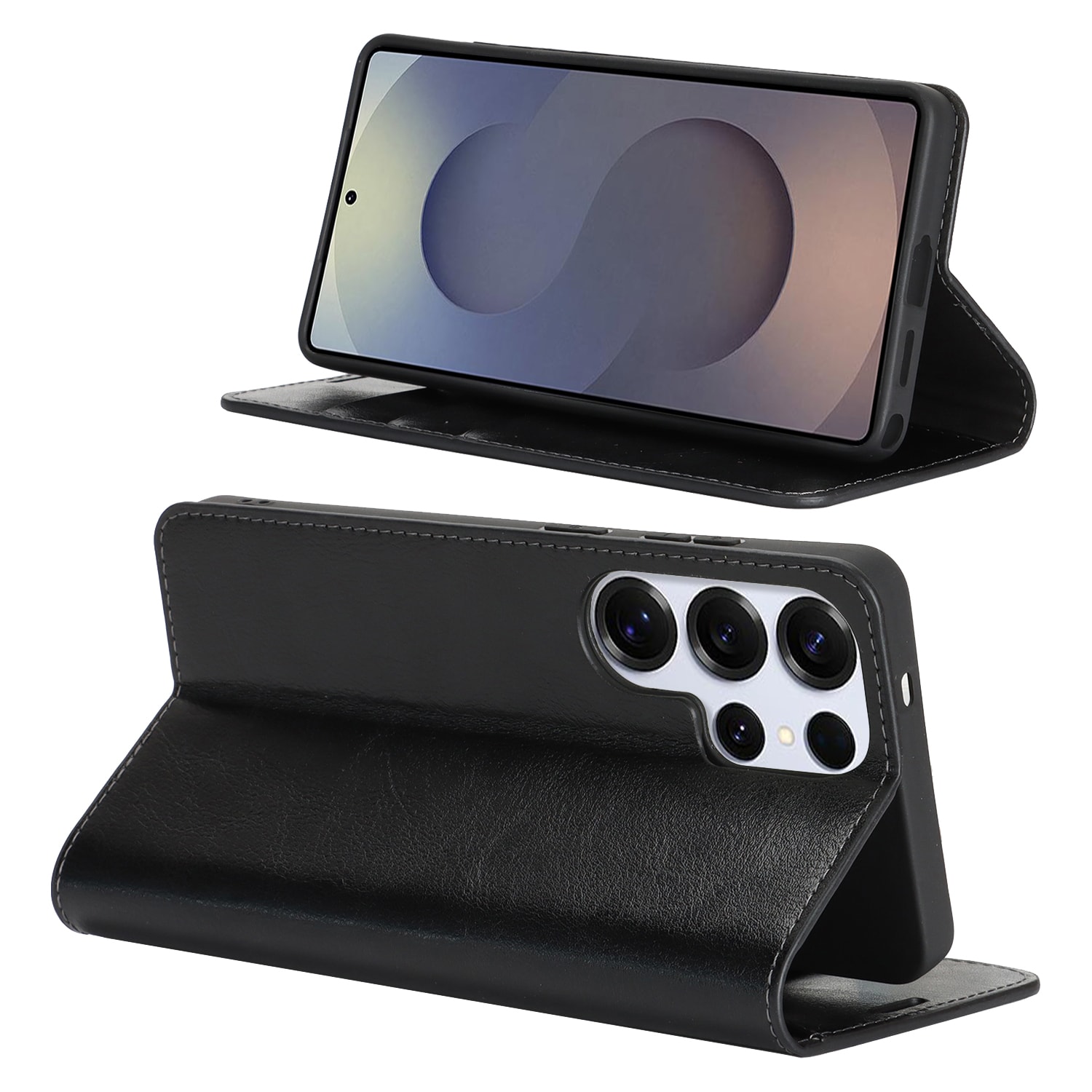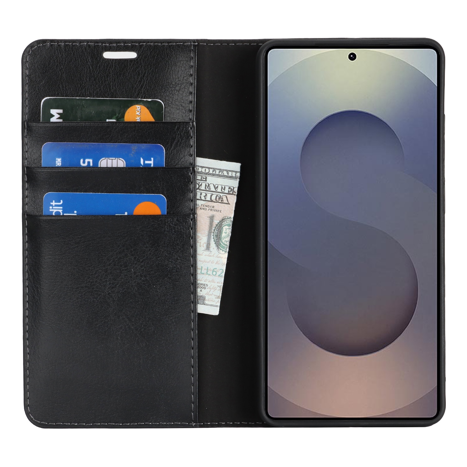 Skydda din Samsung Galaxy S26 Ultra med ett fodral i äkta läder. Trots sin tunna och smarta design har fodralet 3 stycken kortfack och 1 sedelfack på insidan av locket. Telefonen klickas i ett flexibelt skal för att sitta säkert fast i fodralet.