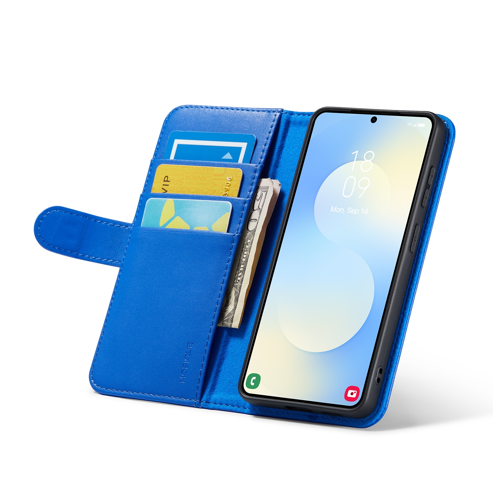 Mobilfodral i äkta läder till Samsung Galaxy S26 från Mobique. Fodralet skyddar runt hela din telefon och har en rymlig plånbok på insidan av locket. Plånboken är rymlig med tre kortfack och en sedelficka.