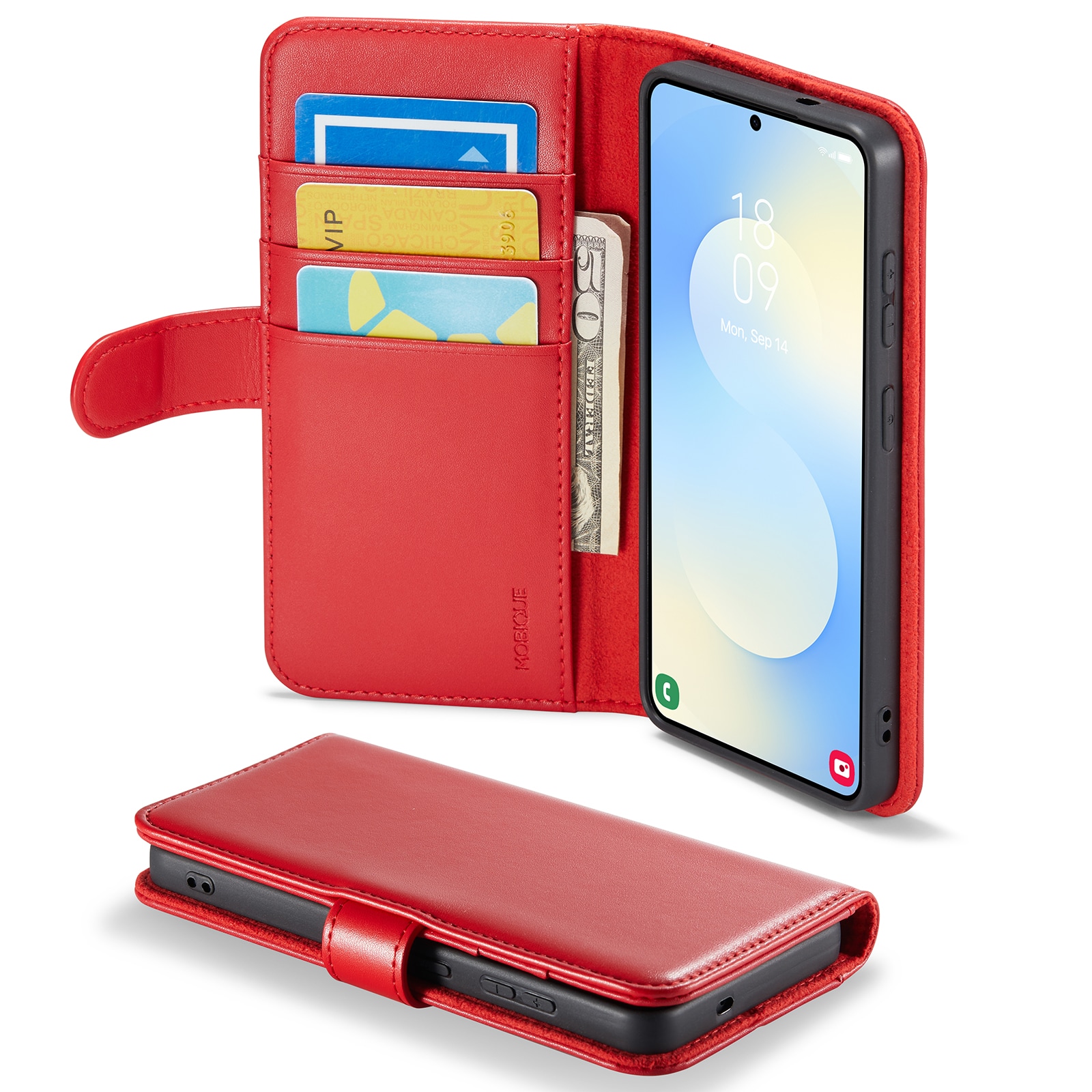 Mobilfodral i äkta läder till Samsung Galaxy S26 från Mobique. Fodralet skyddar runt hela din telefon och har en rymlig plånbok på insidan av locket. Plånboken är rymlig med tre kortfack och en sedelficka.