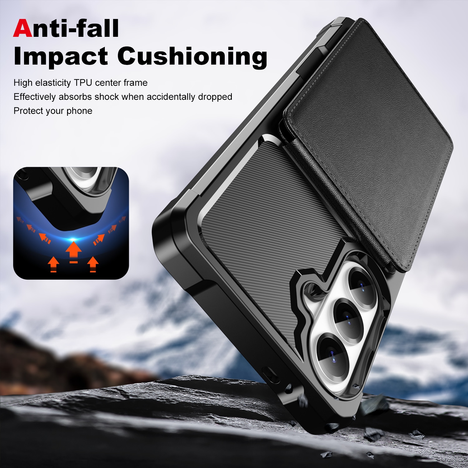 Ge din Samsung Galaxy S26 ett snyggt och smart skydd med detta eleganta mobilskal med kortfack. Skalet är tillverkat för att ge både stil och funktion i vardagen och håller din telefon skyddad mot repor, stötar och smuts. De upphöjda kanterna runt kameran och skärmen skyddar mot repor, medan den stötdämpande TPU-ramen effektivt absorberar stötar vid fall.