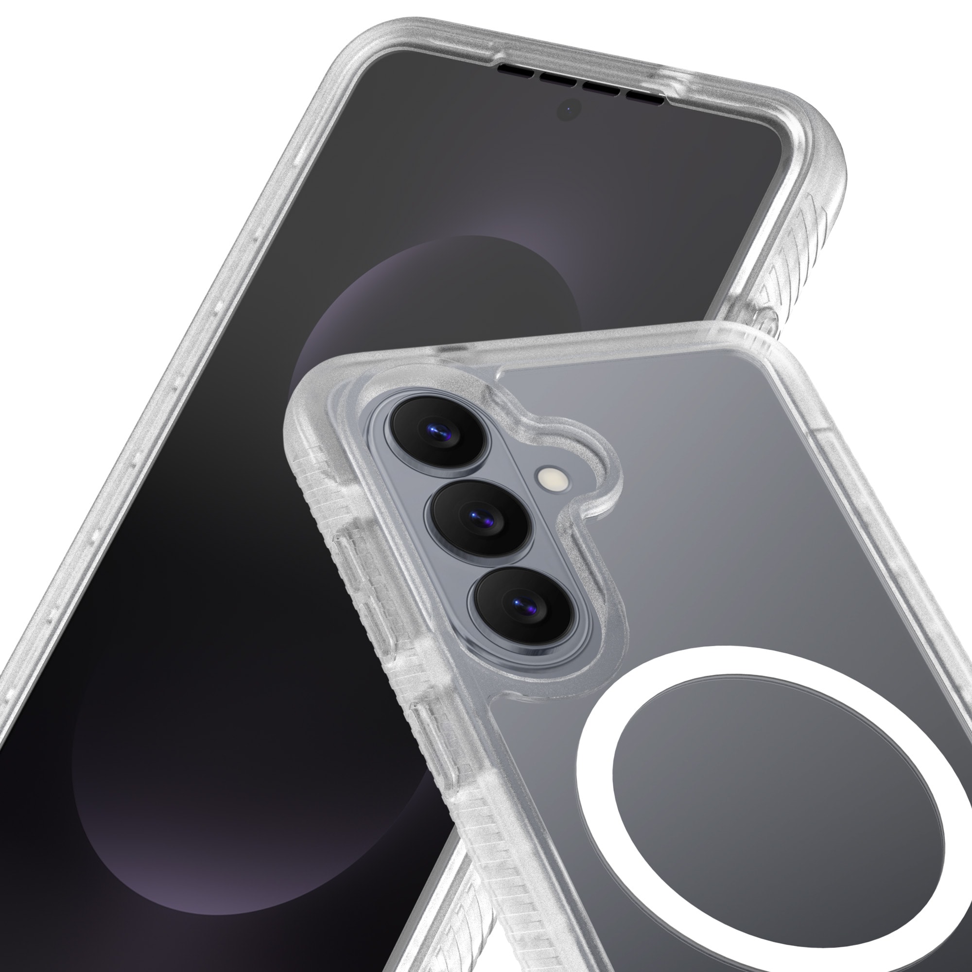 Skalet har upphöjda kanter runt kameran som effektivt skyddar mot repor och sprickor. Den magnetiska ringen gör att skalet fäster perfekt vid MagSafe-laddare och tillbehör, så att laddning och användning alltid är smidig.