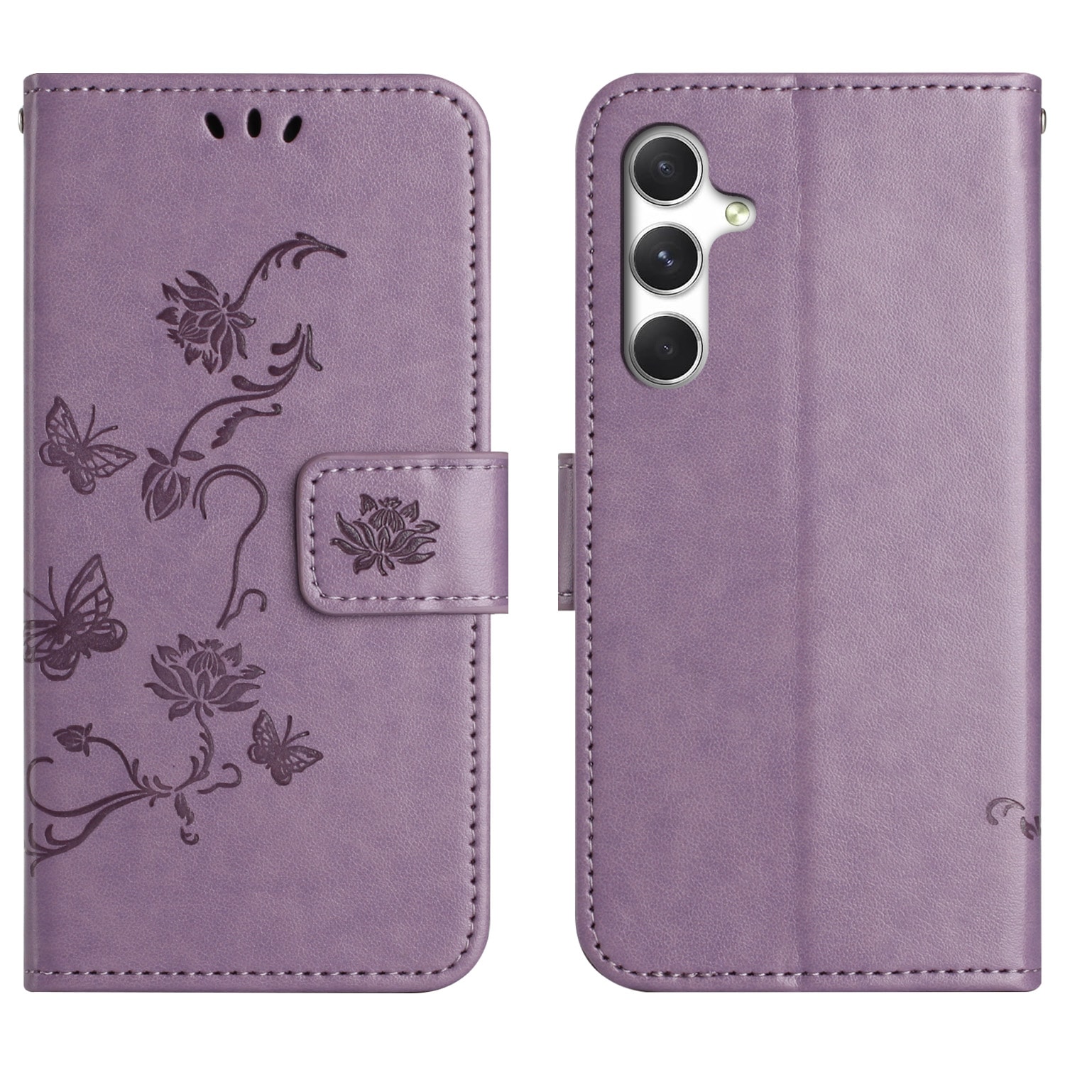 Mobilfodral med fjärilar och mönster stansat i lädret till Samsung Galaxy S26. Plånboksfodralet har ett snyggt utseende och skyddar runt om hela telefonen så att du undviker skador, repor och smuts.