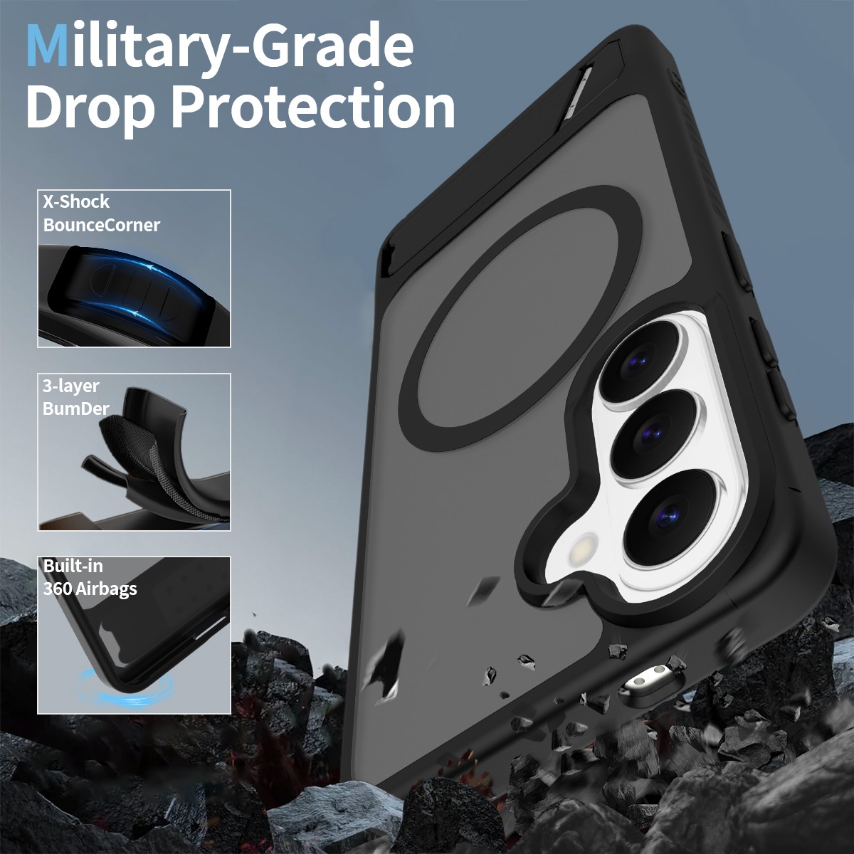 Den magnetiska ringen på baksidan är kompatibel med MagSafe-tillbehör som trådlösa laddare och korthållare för en smidig och bekväm användning.