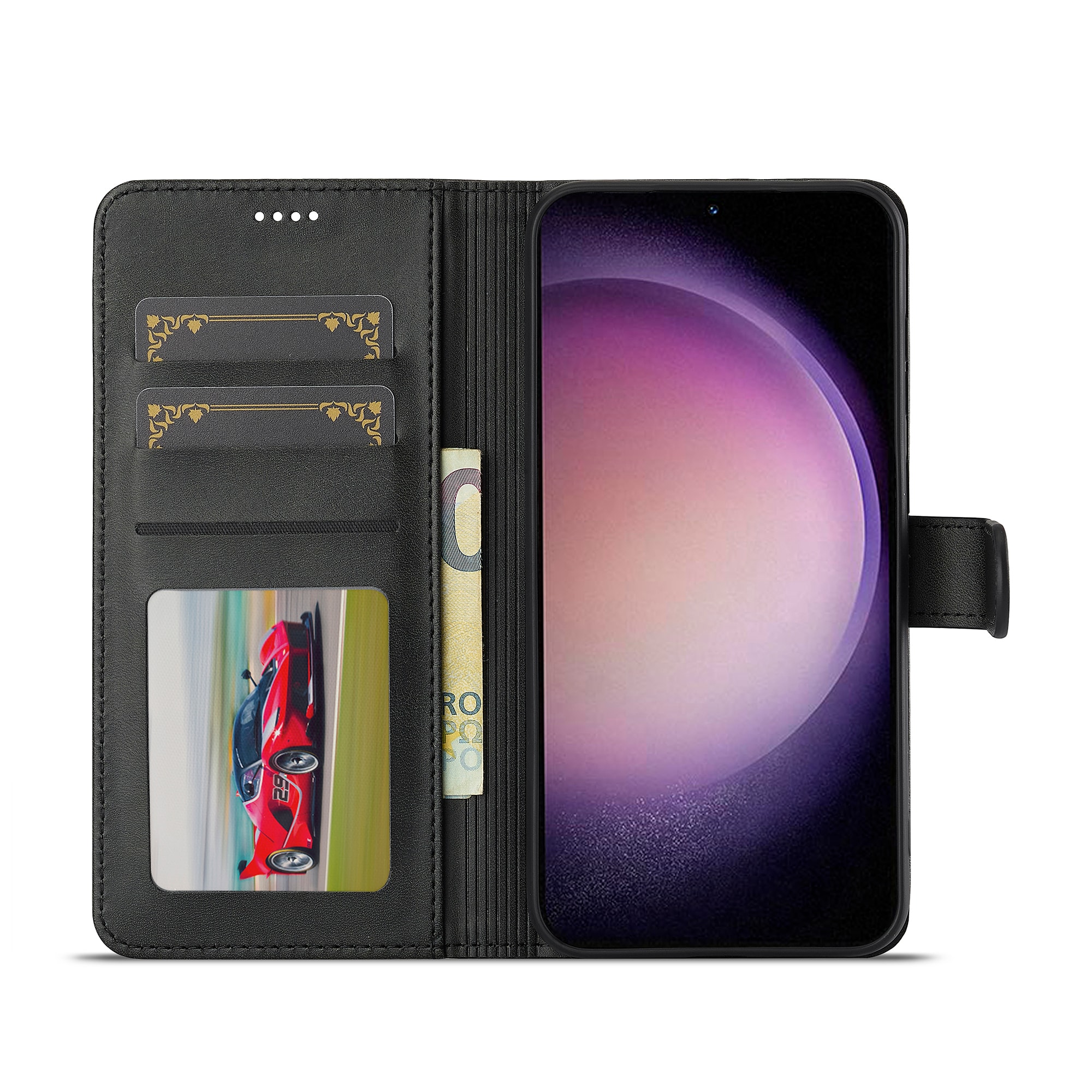 Plånboksfodral från LC.IMEEKE till Samsung Galaxy S26. Stilrent fodral som skyddar telefonen mot skador och ger dig smart förvaring för din plånbok.