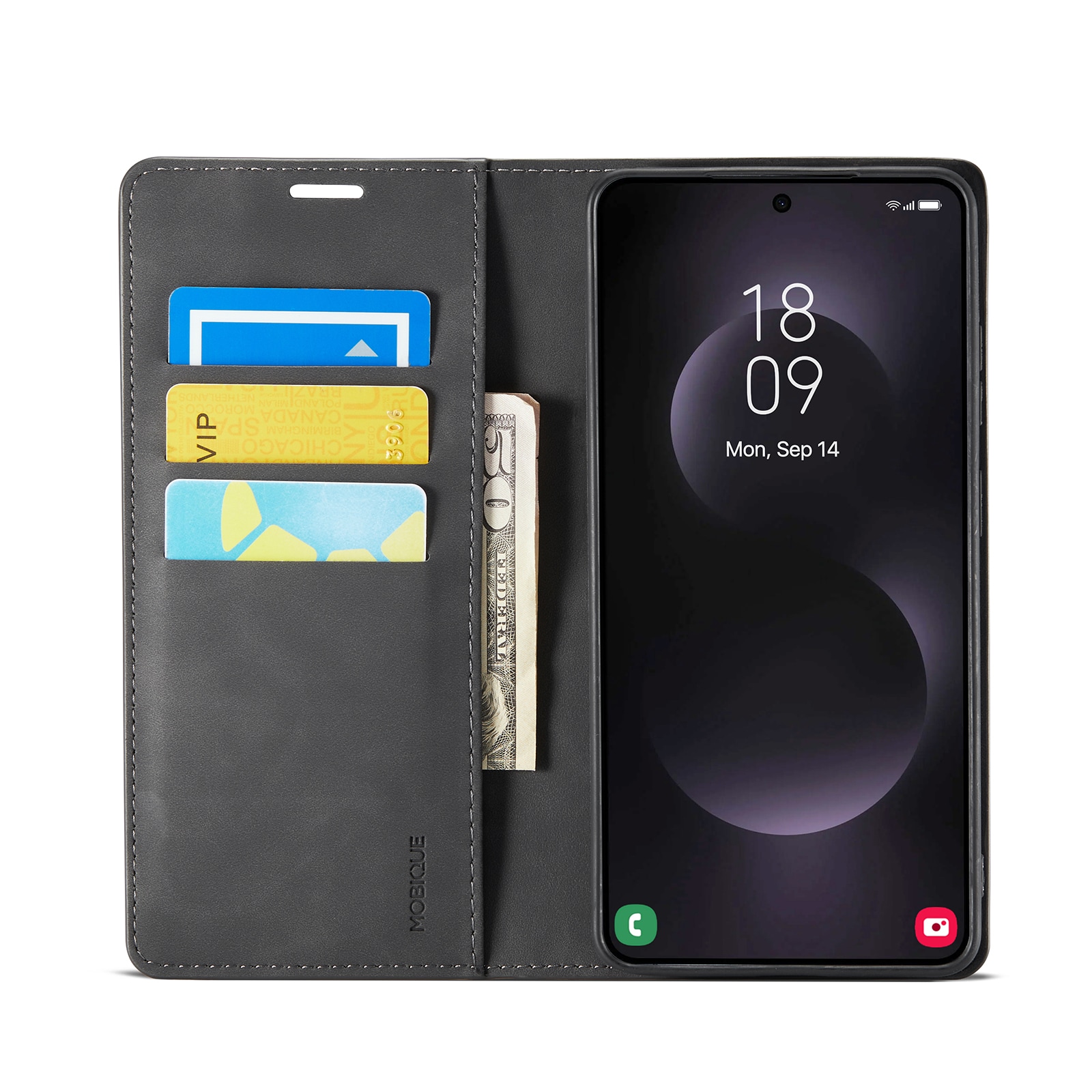 Stilrent och slimmat mobilfodral till Samsung Galaxy S26. Fodralet har ett silkeslent omslag som har tillverkats av hållbart konstläder och ett inbyggt skal som tillverkats av stötdämpande TPU. Locket ger ett utmärkt skydd mot repor på skärmen och det inbyggda skalet skyddar bra vid stötar och fall.