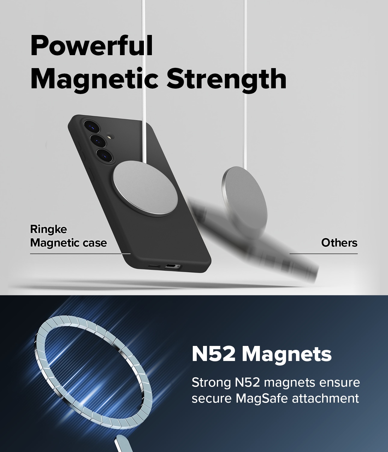 Stilrent silikonskal med MagSafe från Ringke till Samsung Galaxy S26. Skalet är stötdämpande för att skydda mot skador och MagSafe-stödet gör att du kan använda MagSafe-tillbehör och MagSafe-ladda med skalet på.