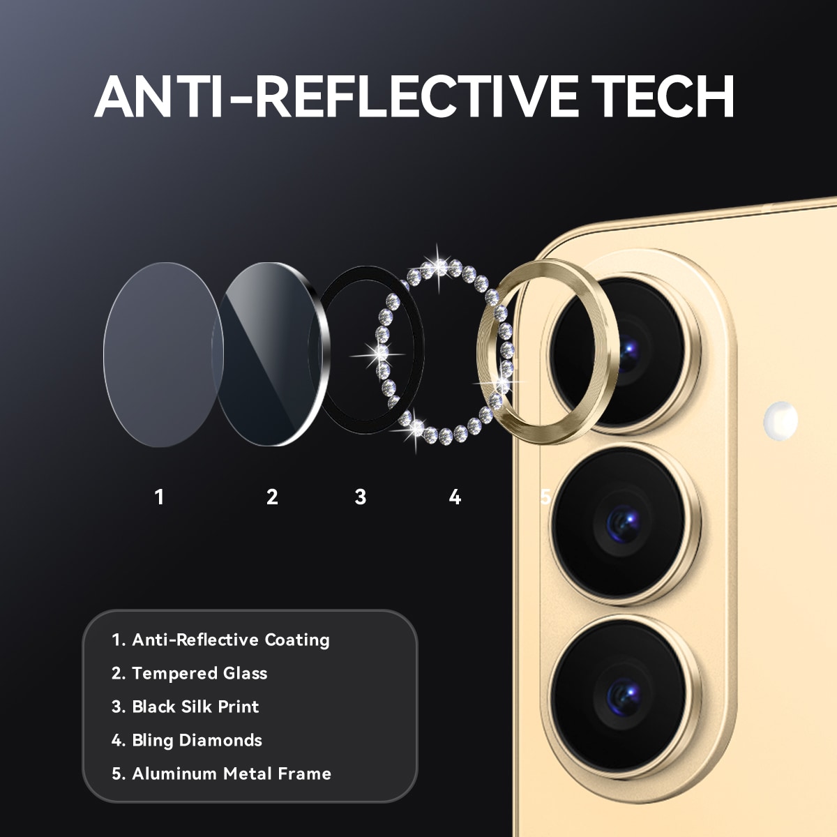 NORTHJO - Linsskydd Rhinestone Härdat Glas Samsung Galaxy S26 Guld