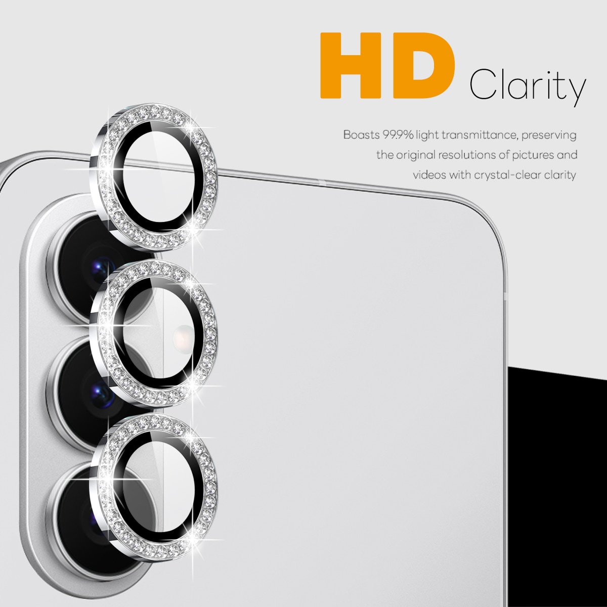 Linsskydd Rhinestone Härdat Glas Samsung Galaxy S26 Silver