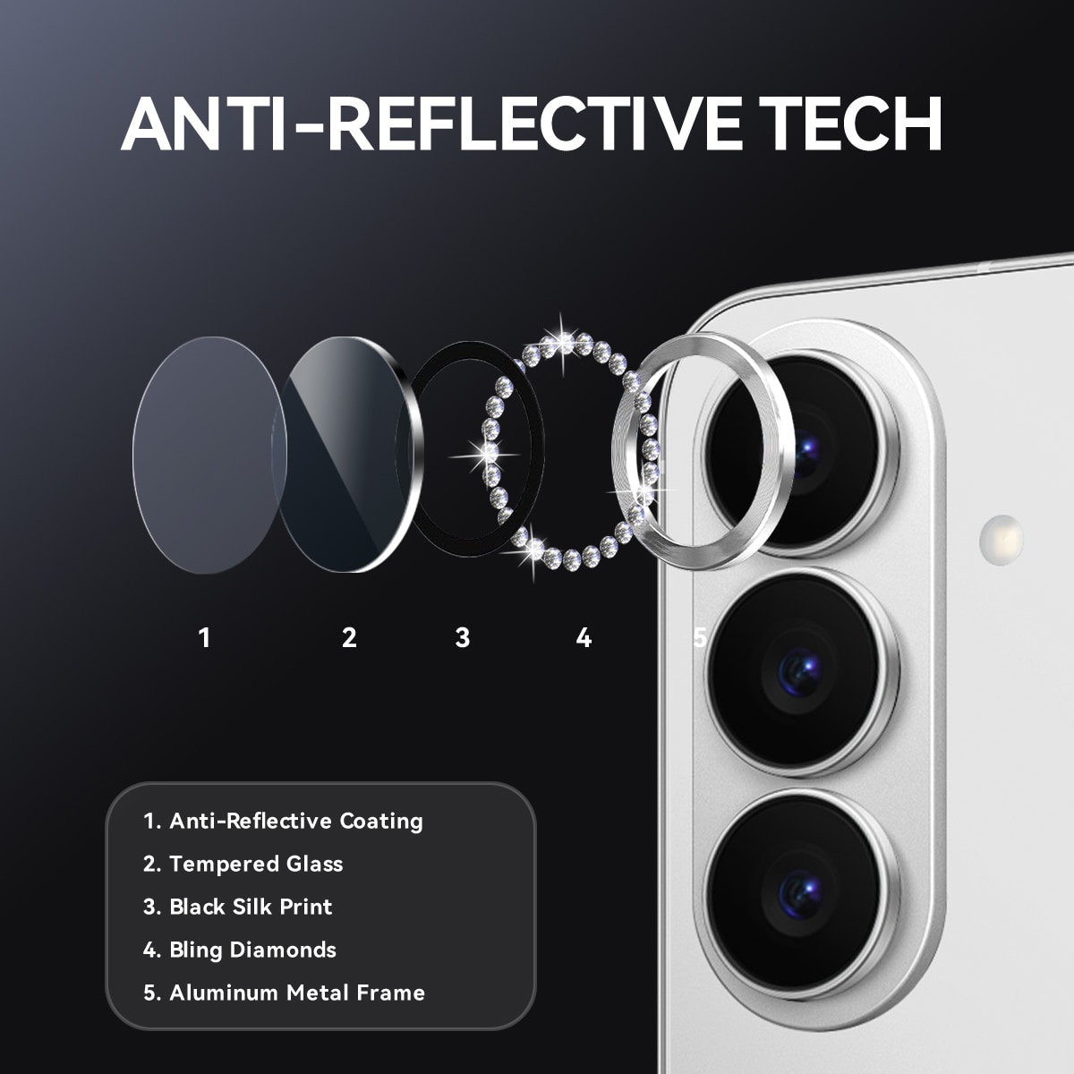 Skydda kameralinserna på din Samsung Galaxy S26 med ett linsskydd i härdat glas med glittrande rhinestones från Northjo. Det ger ett pålitligt skydd mot repor och stötar samtidigt som kameran får ett lyxigt utseende. Den täckande designen skyddar hela linsen utan att påverka bildkvaliteten.