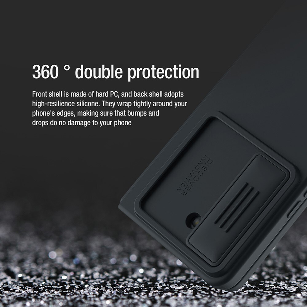 Skyddande silikonskal med kameraskydd och slät greppvänlig yta till Samsung Galaxy Z Fold 5 från Nillkin. För att skydda kameran mot repor och skador har skalet en lucka som enkelt skjuts framför kameran när du inte använder den.