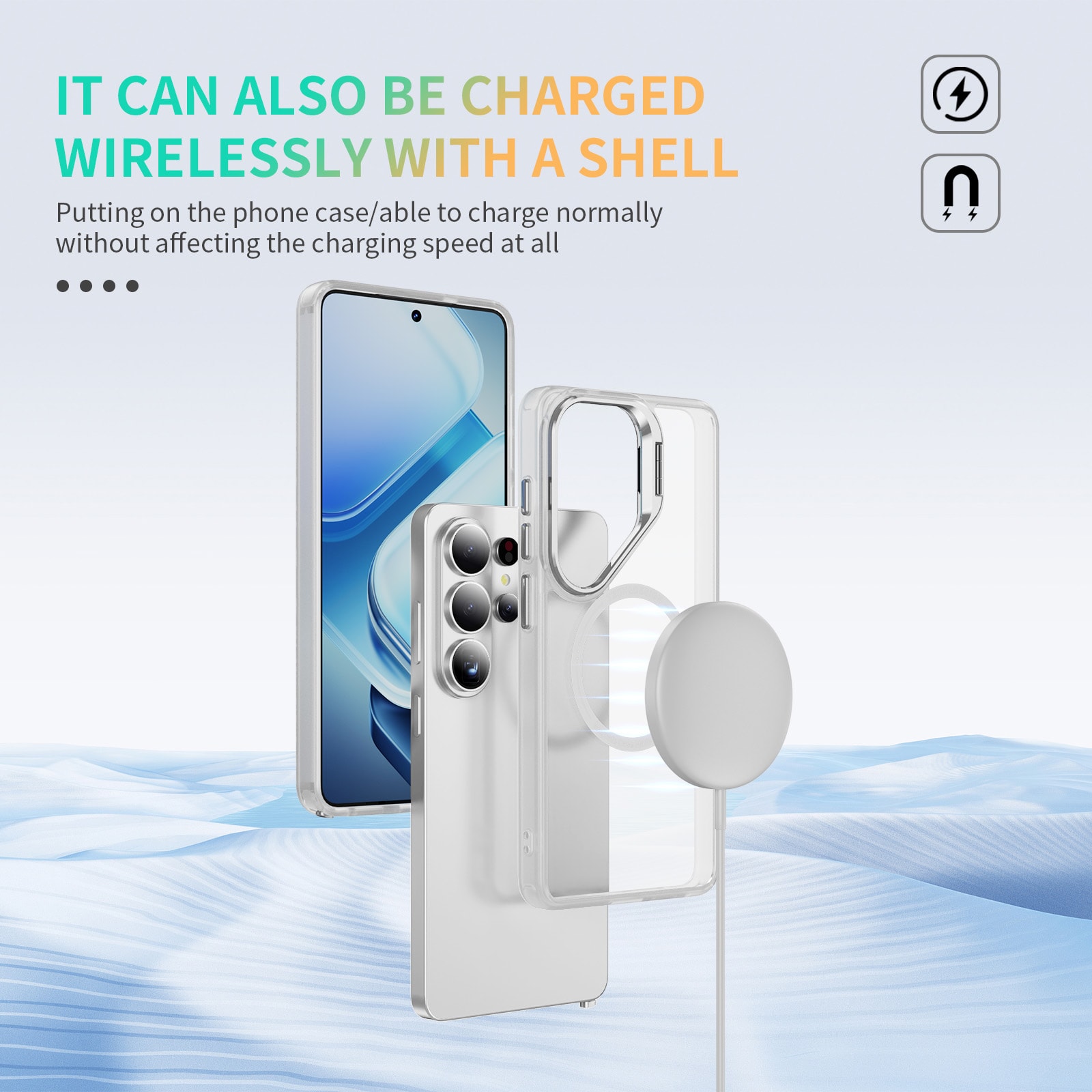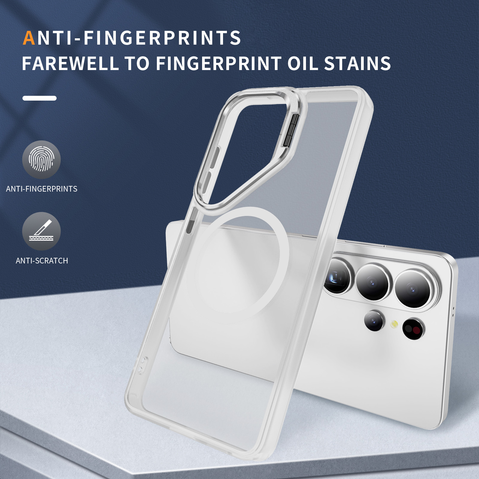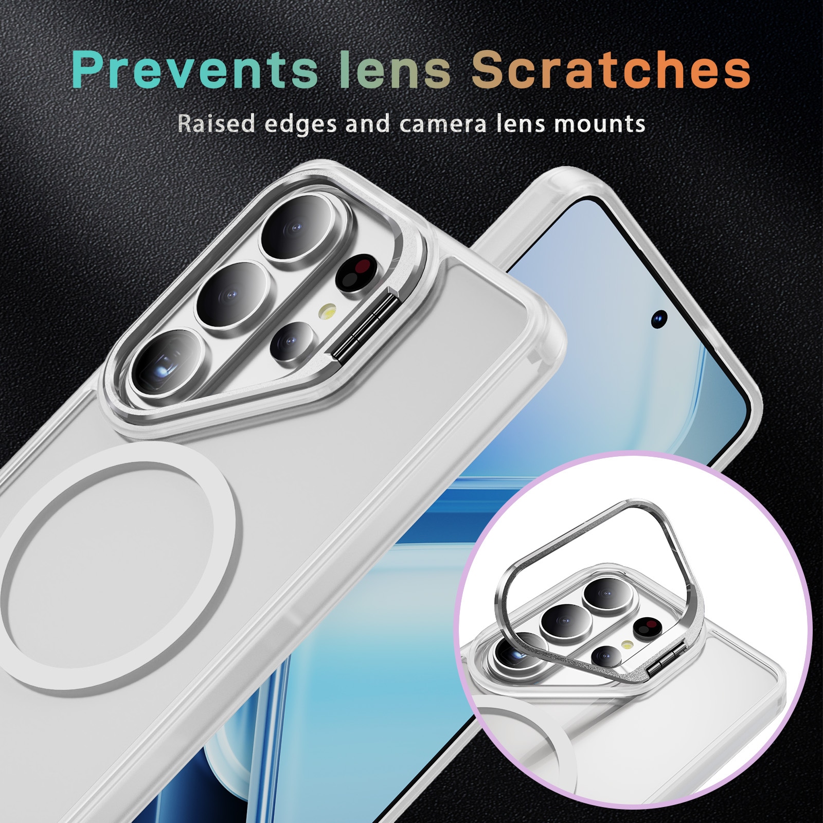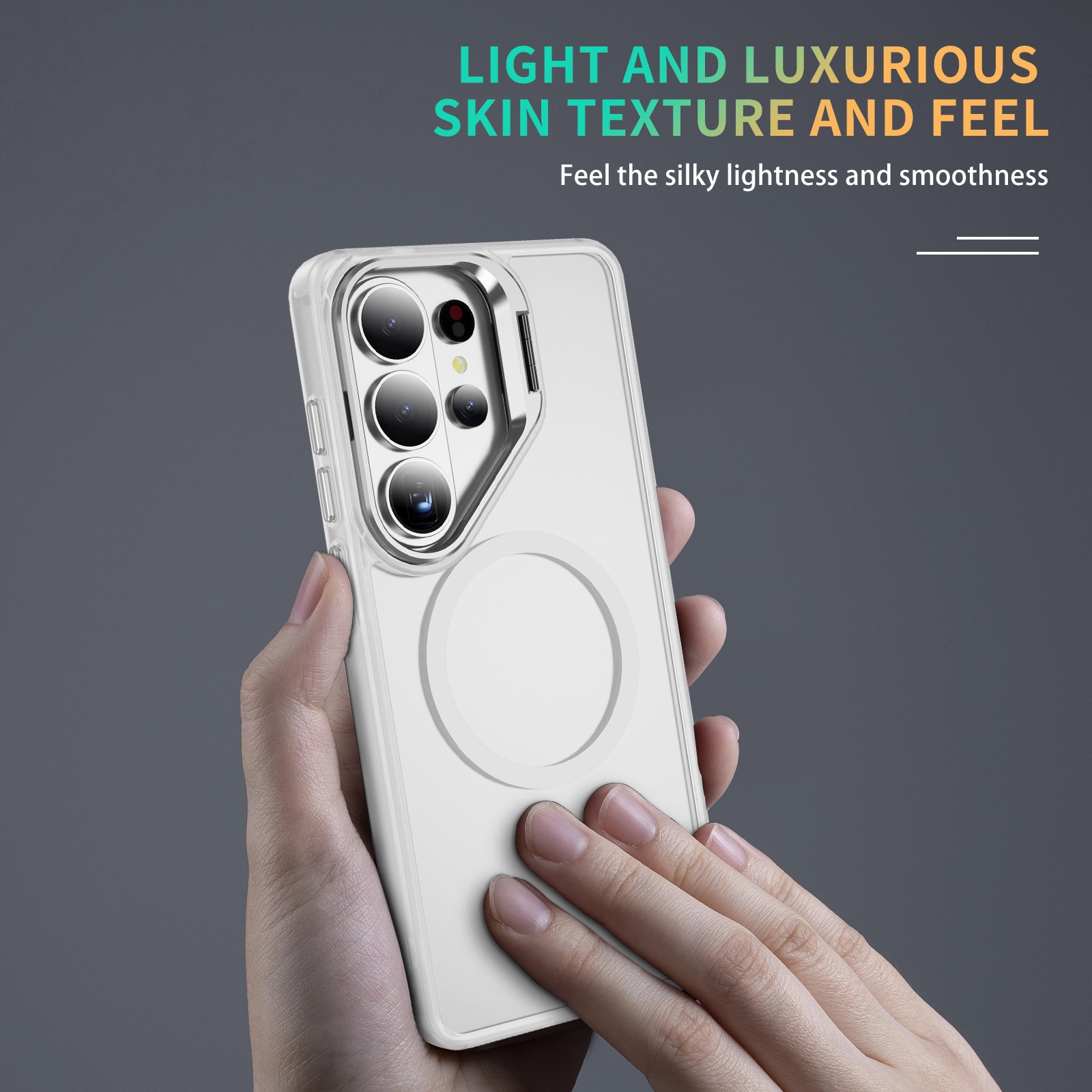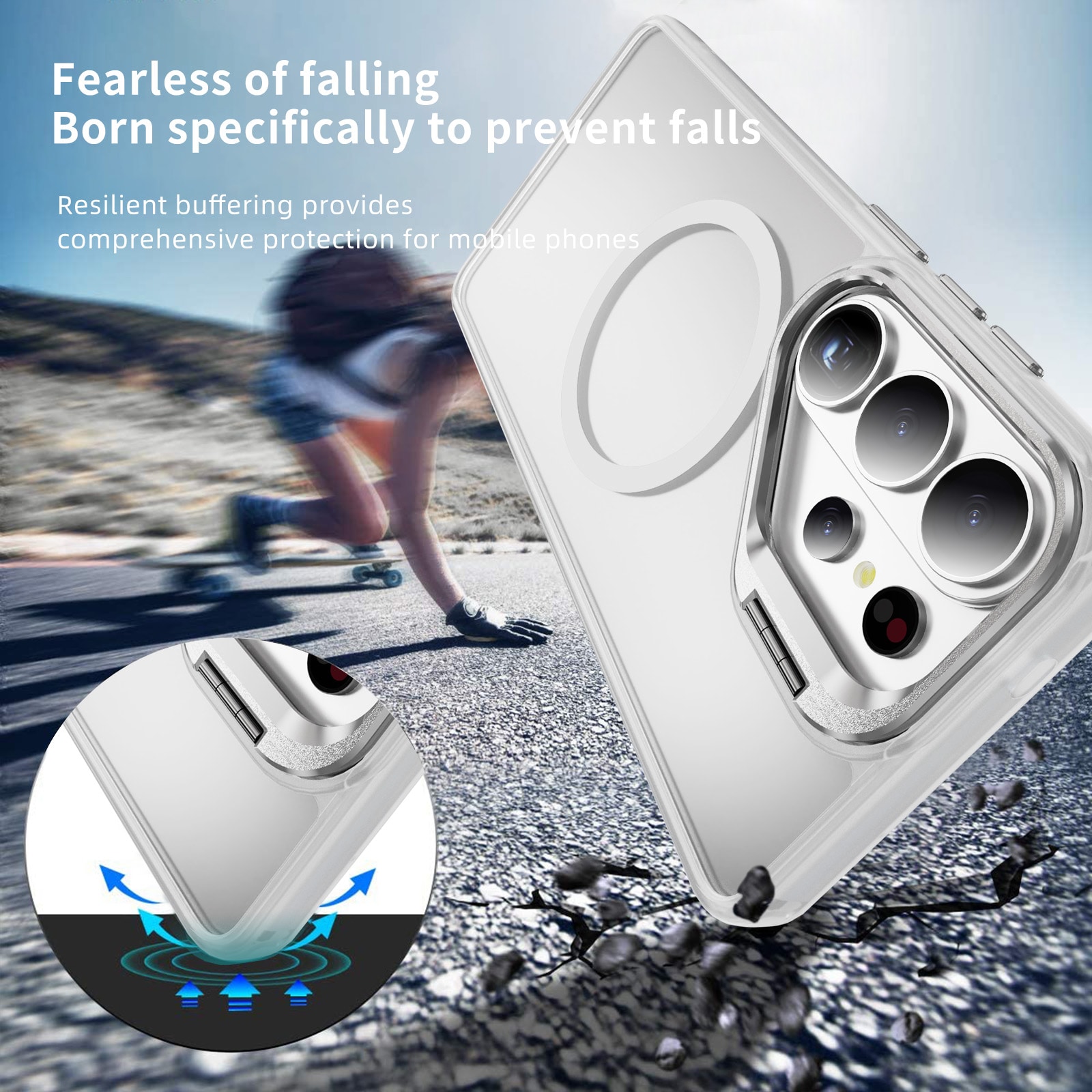 Snyggt och praktiskt hybridskal med utfällbart kickstand och MagSafe till Samsung Galaxy S26 Ultra. För bästa skydd mot stötar och fall är skalet tvådelat med en TPU-kärna och ett hölje i hårdplast. Skalet har en metallram runt kameran som förhindrar skador på kameralinserna och fungerar även som ett praktiskt, utfällbart stativ för filmvisning, videoklipp eller spel med bekväm visningsvinkel.