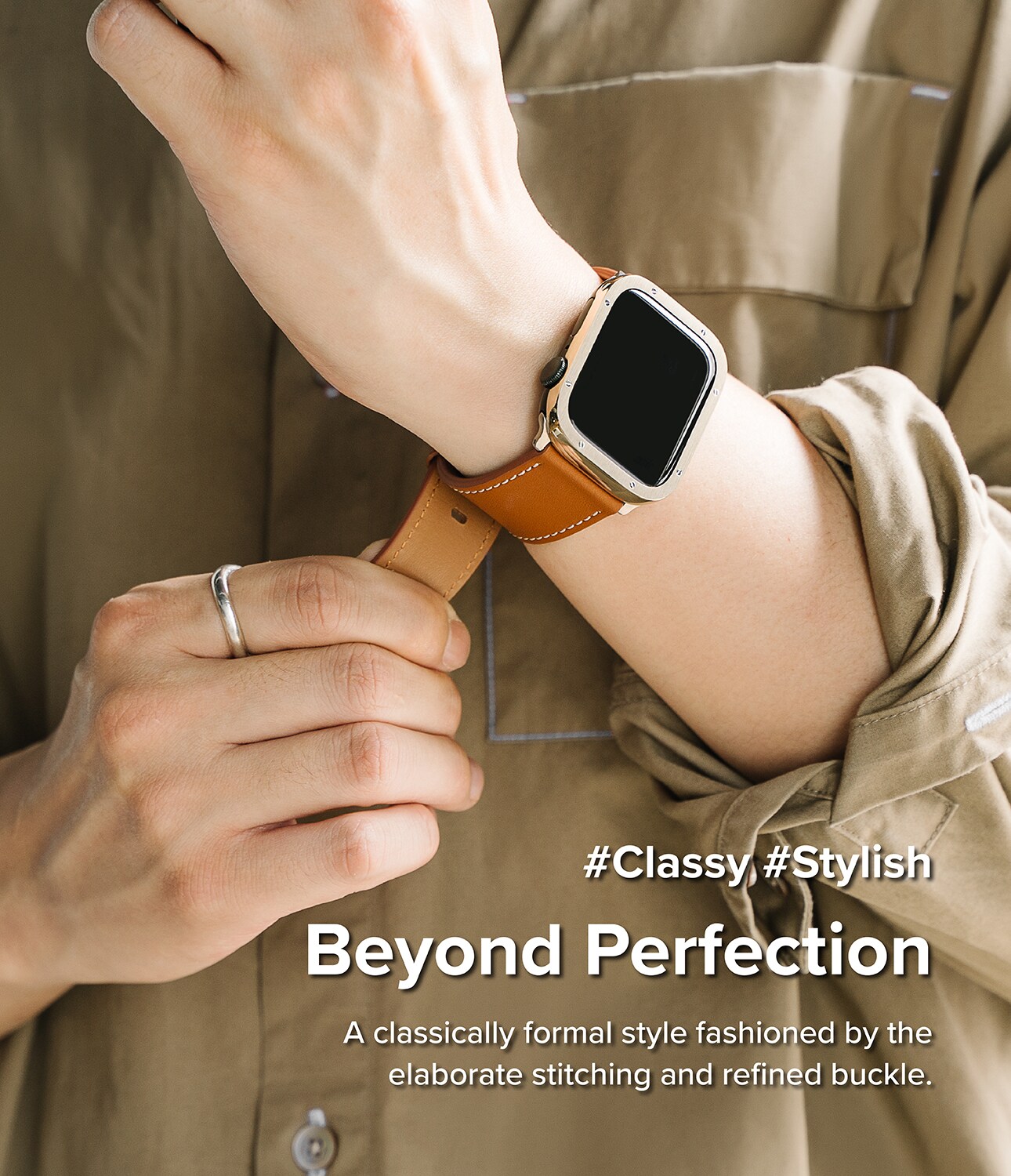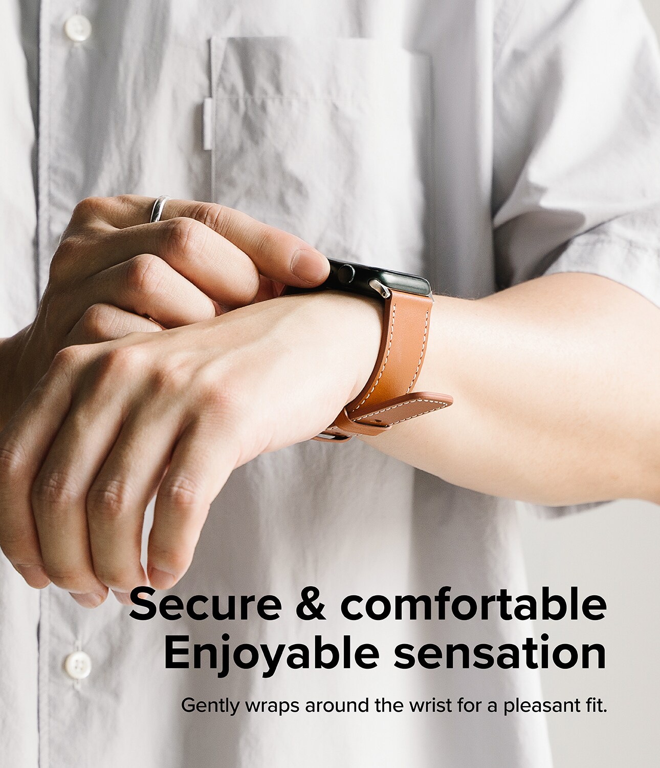 Ge din Apple Watch Series 1-3 42mm en elegant uppgradering med detta klassiska och exklusiva klockarmband från Ringke. Armbandet är designat för att ge en bekväm och ventilerande passform, vilket gör det perfekt för både vardagsbruk och mer formella tillfällen. Tillverkat av äkta läder och med ett slitstarkt spänne i rostfritt stål, kombinerar det elegant design med praktisk funktion.