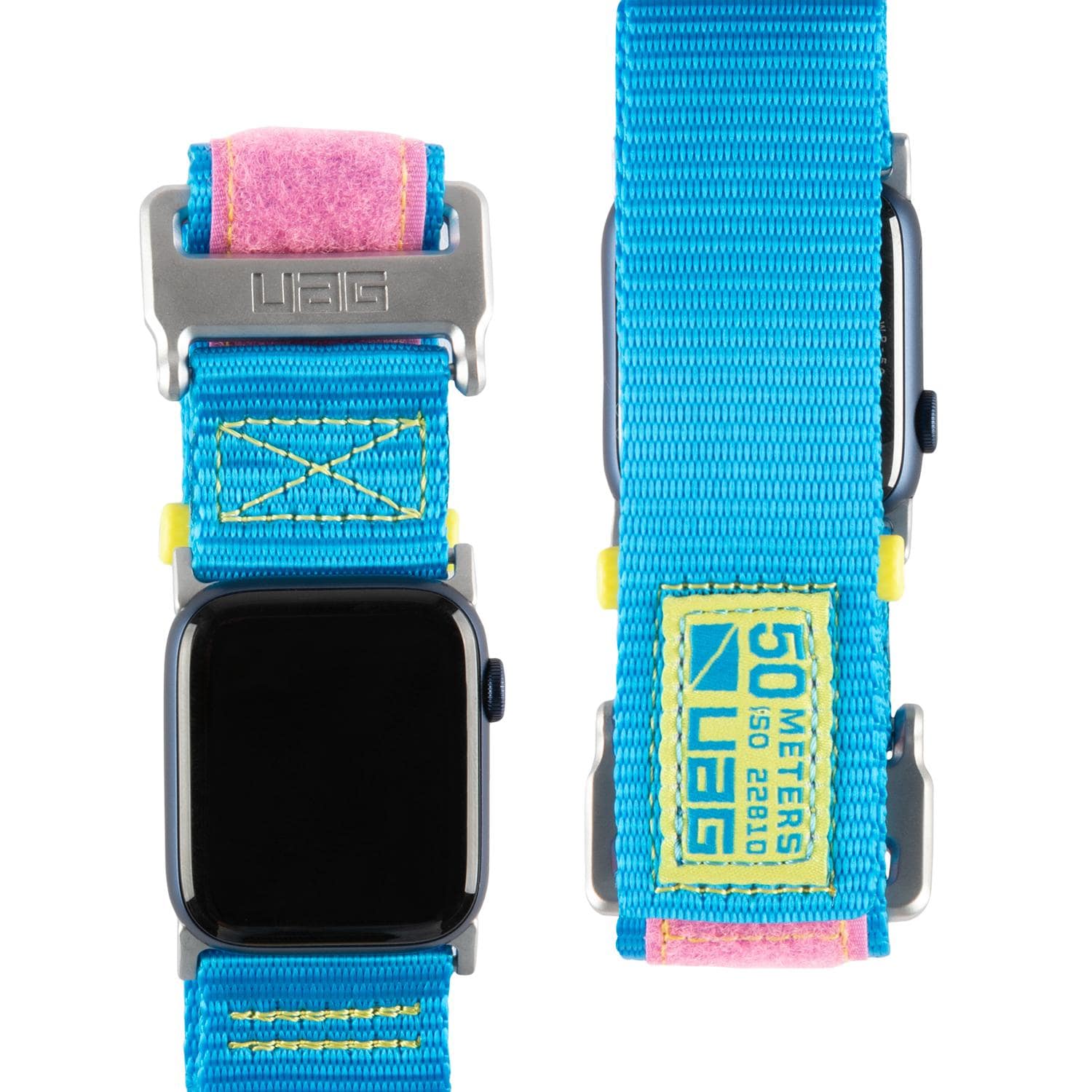 Armband i limiterad upplaga från UAG till Apple Watch 42 mm, 44 mm och 45 mm. Armbandet är tillverkat i nylon för att klara de tuffaste förhållandena. Din Apple Watch sitter säkert fast kring handleden tack vare armbandets gedigna design med en bred kardborrestängning.