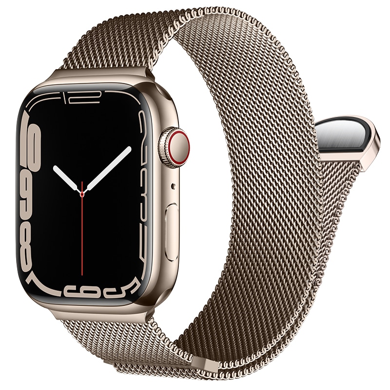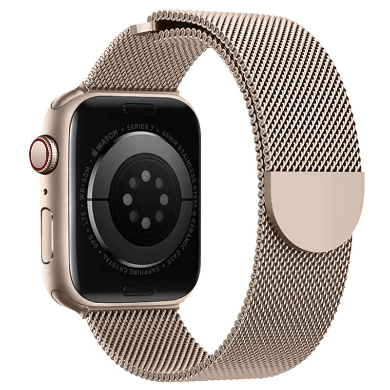 Milanese loop-armband till Apple Watch Series 9 45mm. Armbandet är tillverkat i polerat rostfritt stål som ger en exklusiv känsla och utseende. Magnetspännet gör att klockan är enkel att anpassa efter din arm och hur hårt du vill spänna klockan.