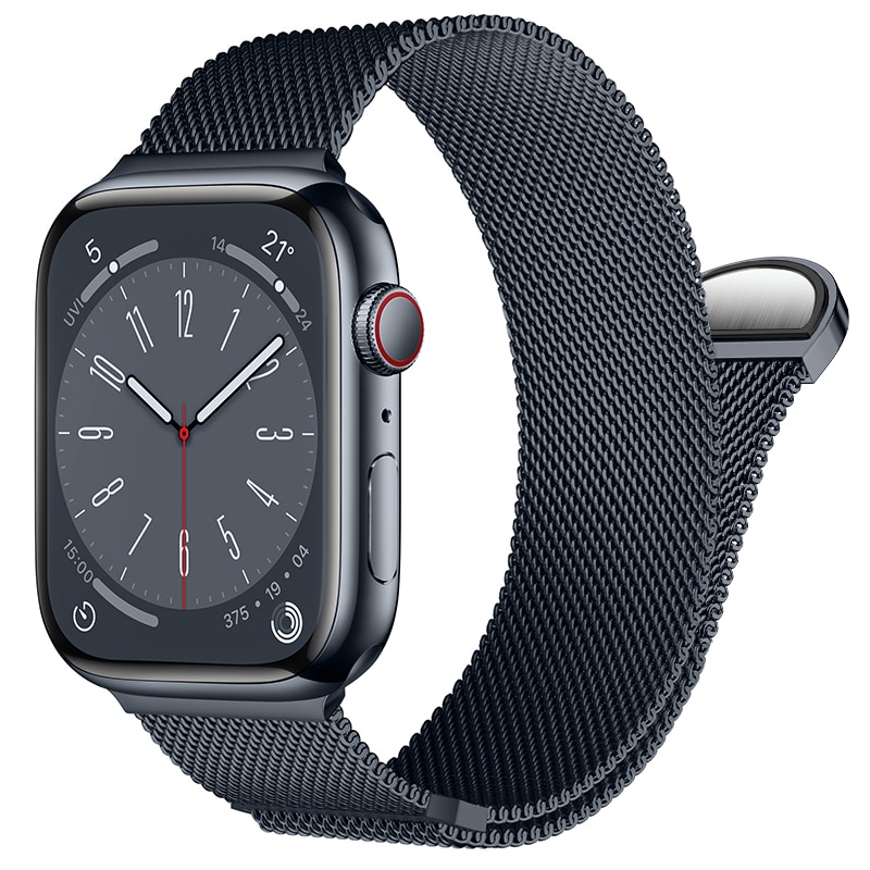 Milanese loop-armband till Apple Watch SE 40mm. Armbandet är tillverkat i polerat rostfritt stål som ger en exklusiv känsla och utseende. Magnetspännet gör att klockan är enkel att anpassa efter din arm och hur hårt du vill spänna klockan.