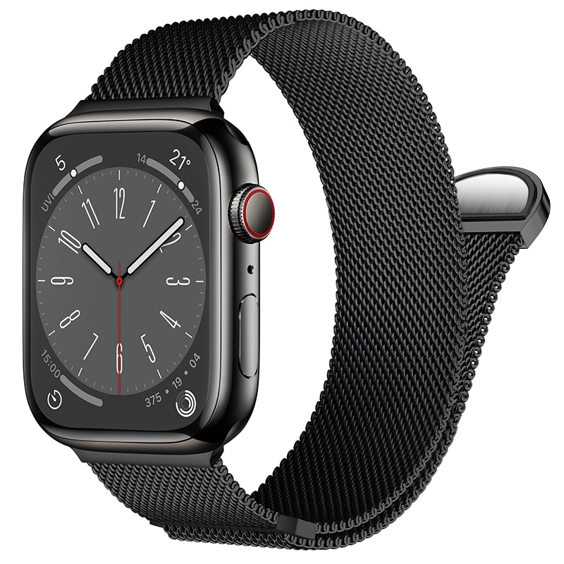 Milanese loop-armband till Apple Watch SE 44mm. Armbandet är tillverkat i polerat rostfritt stål som ger en exklusiv känsla och utseende. Magnetspännet gör att klockan är enkel att anpassa efter din arm och hur hårt du vill spänna klockan.