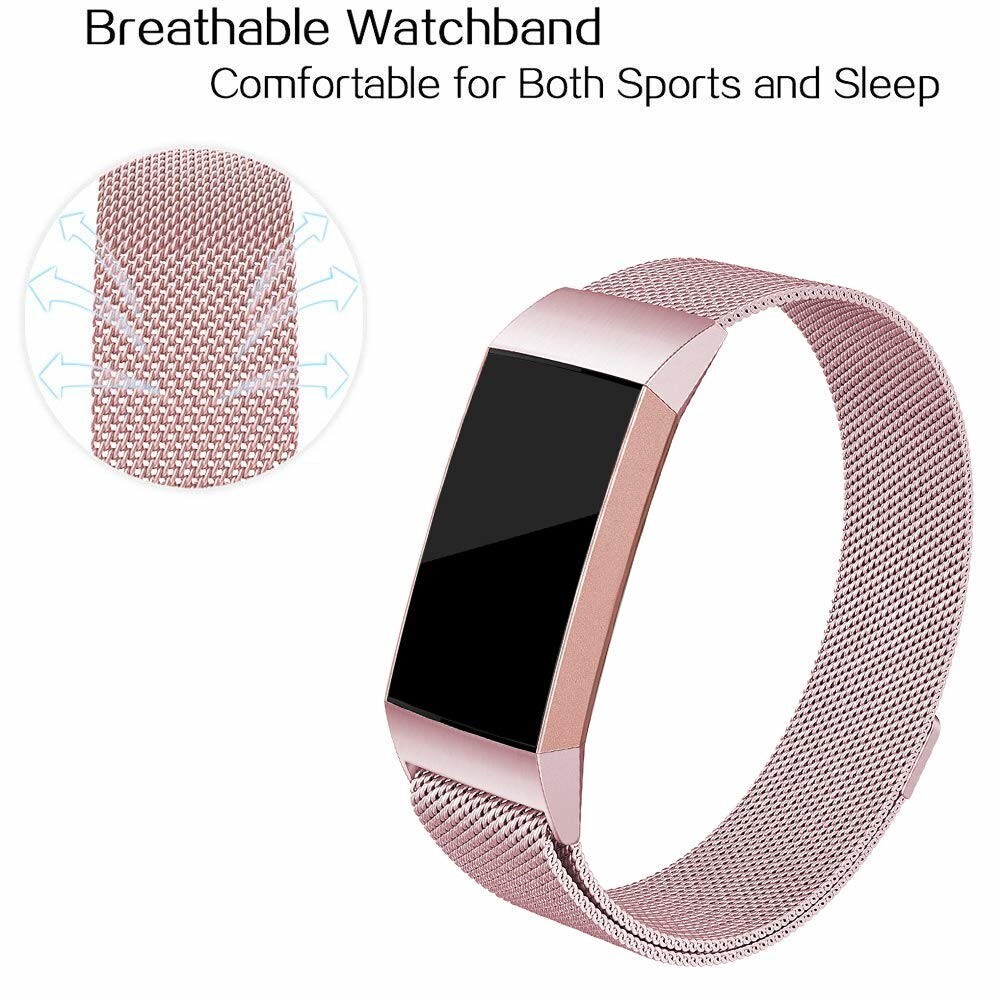 Milanese loop-armband till Fitbit Charge 4, Charge 3. Armbandet är tillverkat i polerat rostfritt stål som ger en exklusiv känsla och utseende. Magnetspännet gör att klockan är enkel att anpassa efter din arm och hur hårt du vill spänna klockan.
