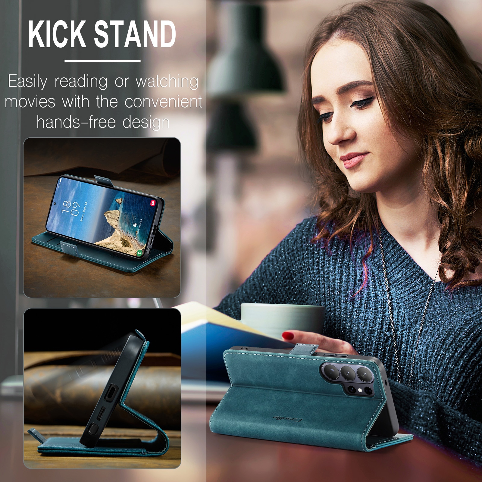 Tunt och smidigt plånboksfodral från CaseMe till Samsung Galaxy S26 Ultra. Fodralet skyddar effektivt runt om hela telefonen utan att den tappar stilen. Locket hålls stängt med osynliga magneter, vilket ger fodralet en tunn design som inte gör telefonen klumpig.