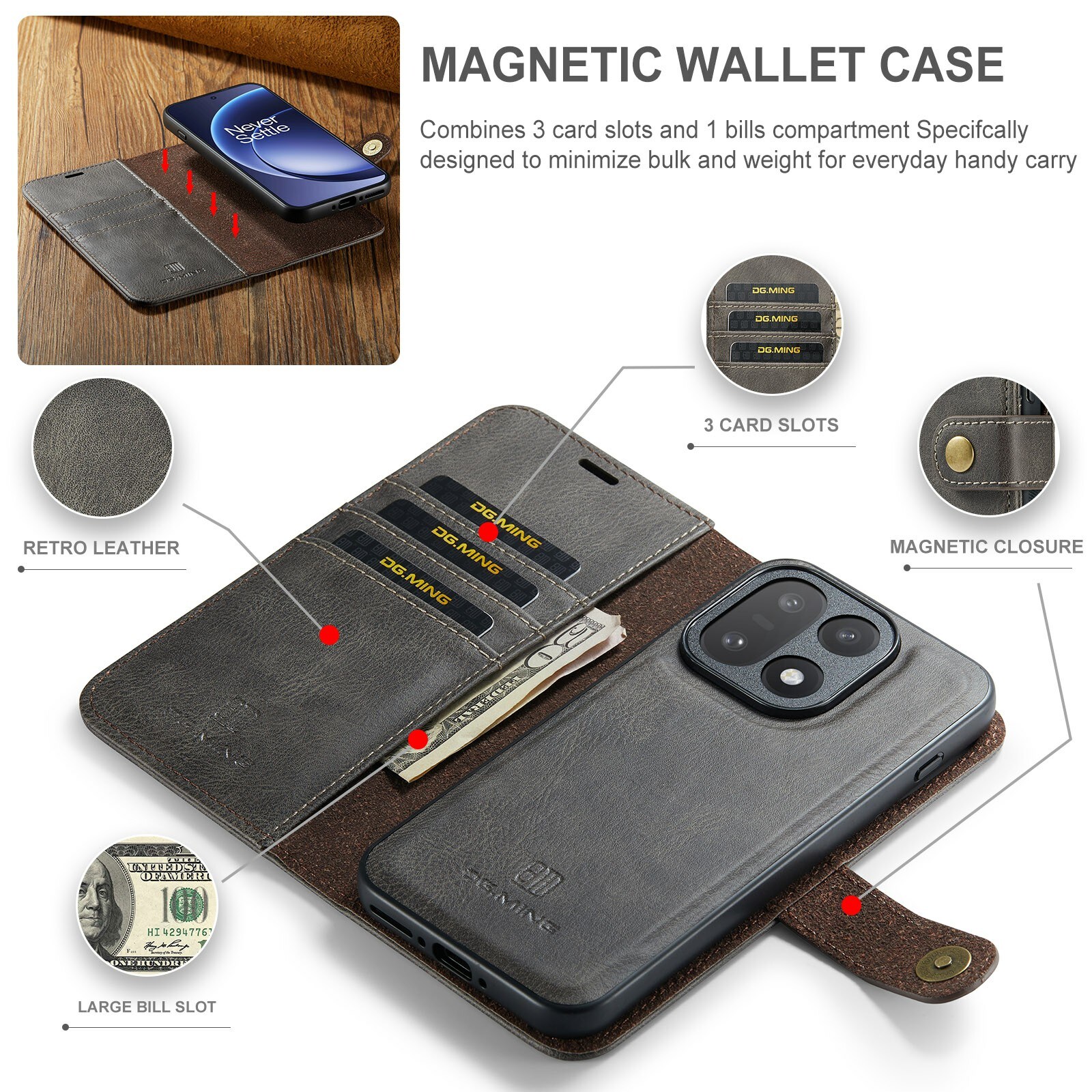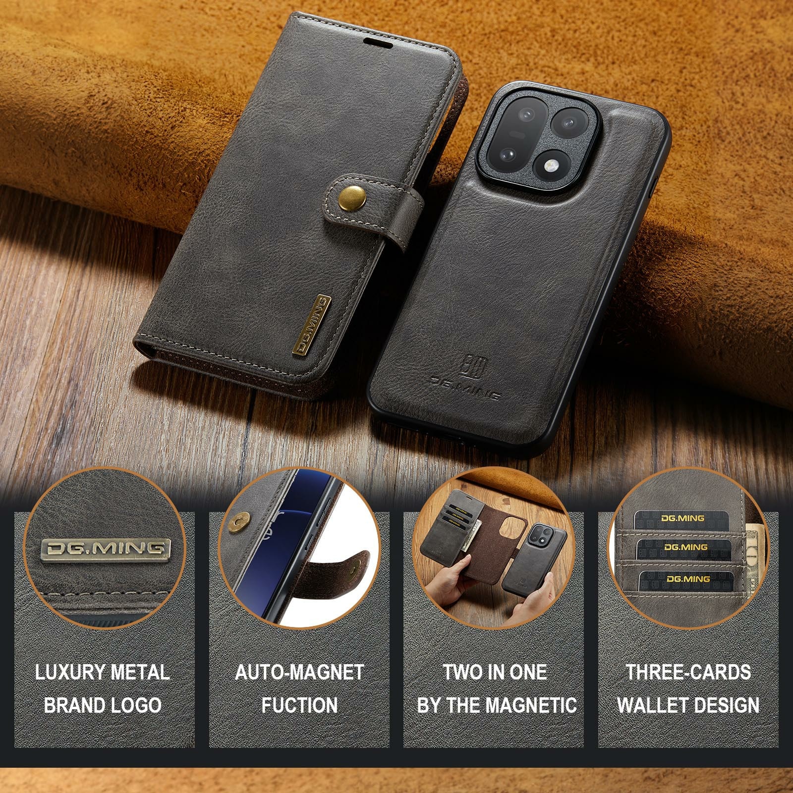 Fodral med avtagbart magnetskal till OnePlus 15 från DG.MING. Fodralet har en klassisk och stilren design. Det avtagbara skalet gör att du slipper använda hela fodralet t.ex. när du är hemma eller på jobbet.