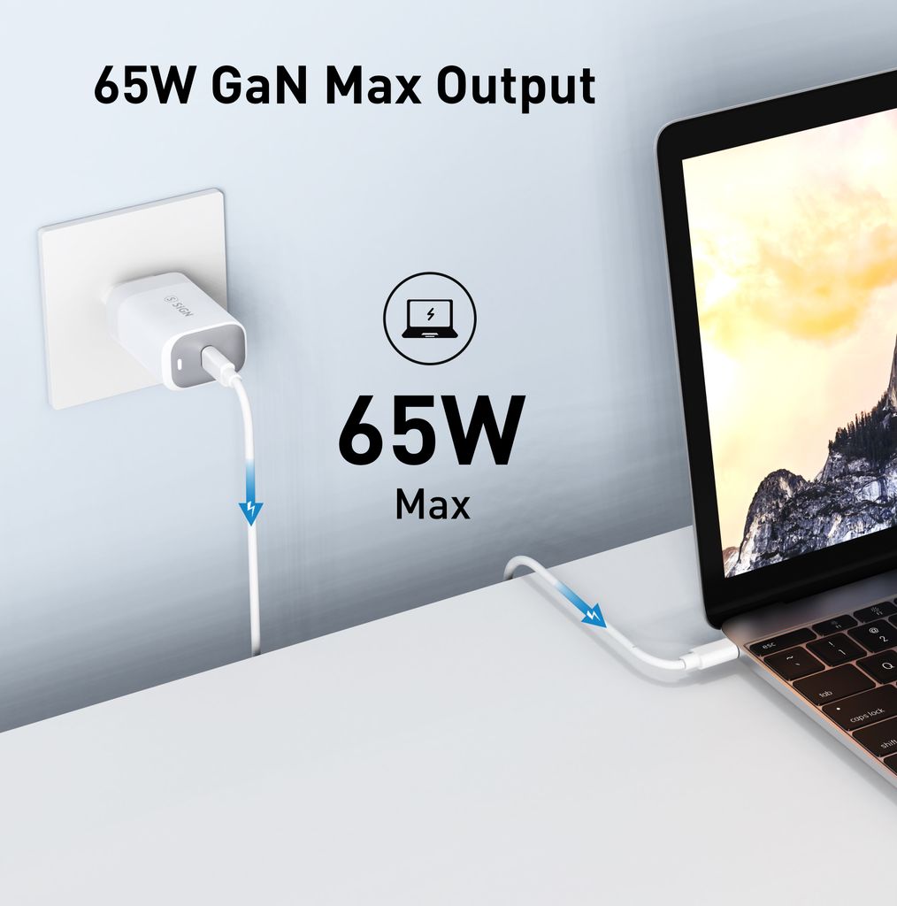 SiGN 65W Laddare med USB-C PD är en kraftfull strömadapter för snabb och effektiv laddning av laptops, smartphones och surfplattor. Med en total uteffekt på 65W via USB-C-porten kan du ladda kompatibla bärbara datorer, mobiler och andra USB-C-enheter utan problem. Stöd för Power Delivery och Qualcomm QuickCharge 3.0 ger snabb och stabil laddning. USB-C PD möjliggör upp till 50 procent batterinivå på cirka 30 minuter för enheter som stöder snabbladdning. En praktisk och mångsidig lösning för hem, kontor och resa.