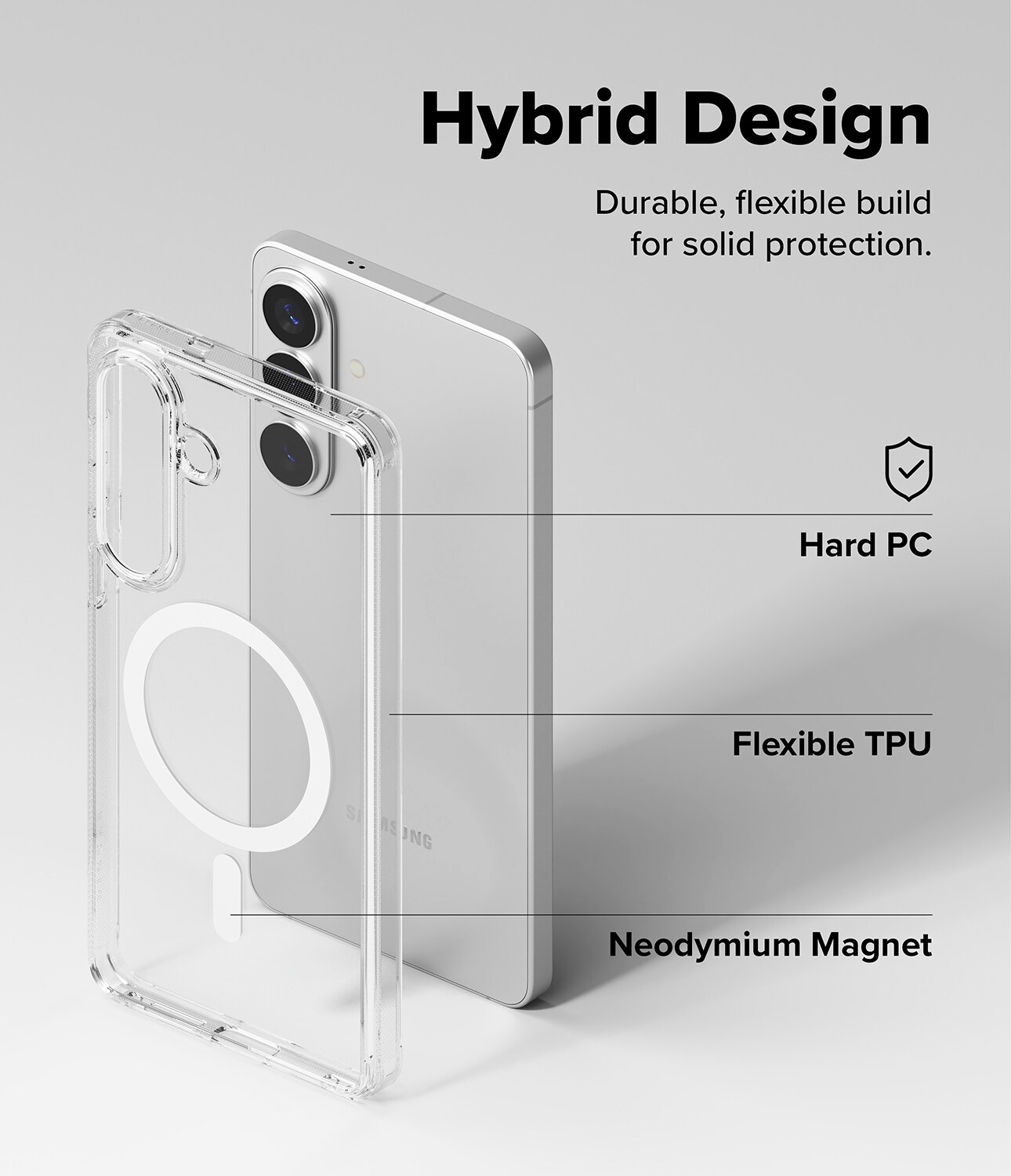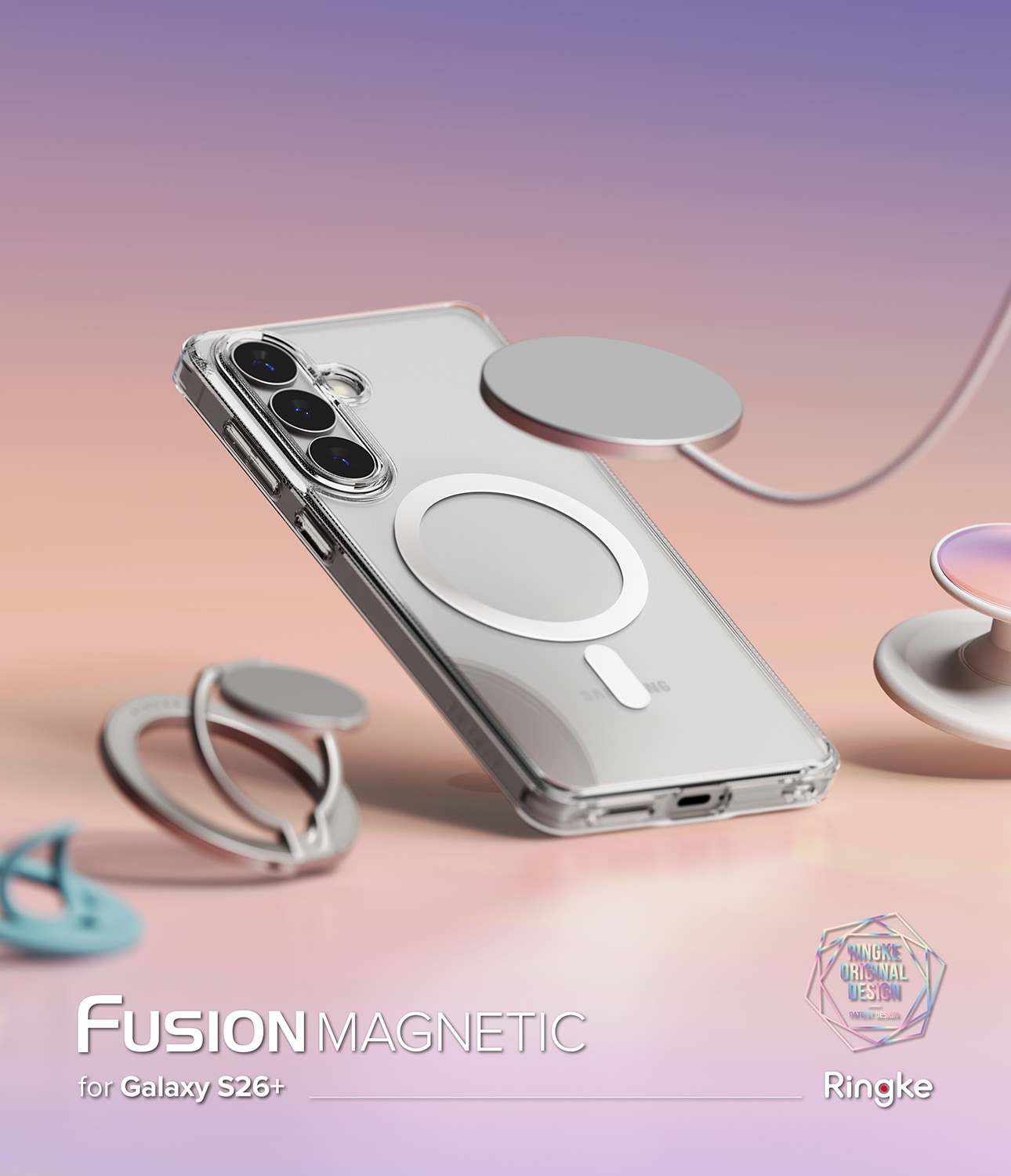 Genomskinligt skal med stöd för MagSafe från Ringke till Samsung Galaxy S26 Plus. Ringke Fusion ger din telefon optimalt skydd nästan utan att synas. För bästa skydd har skalet har en stötdämpande ram som absorberar fall och en baksida i hård polykarbonat.