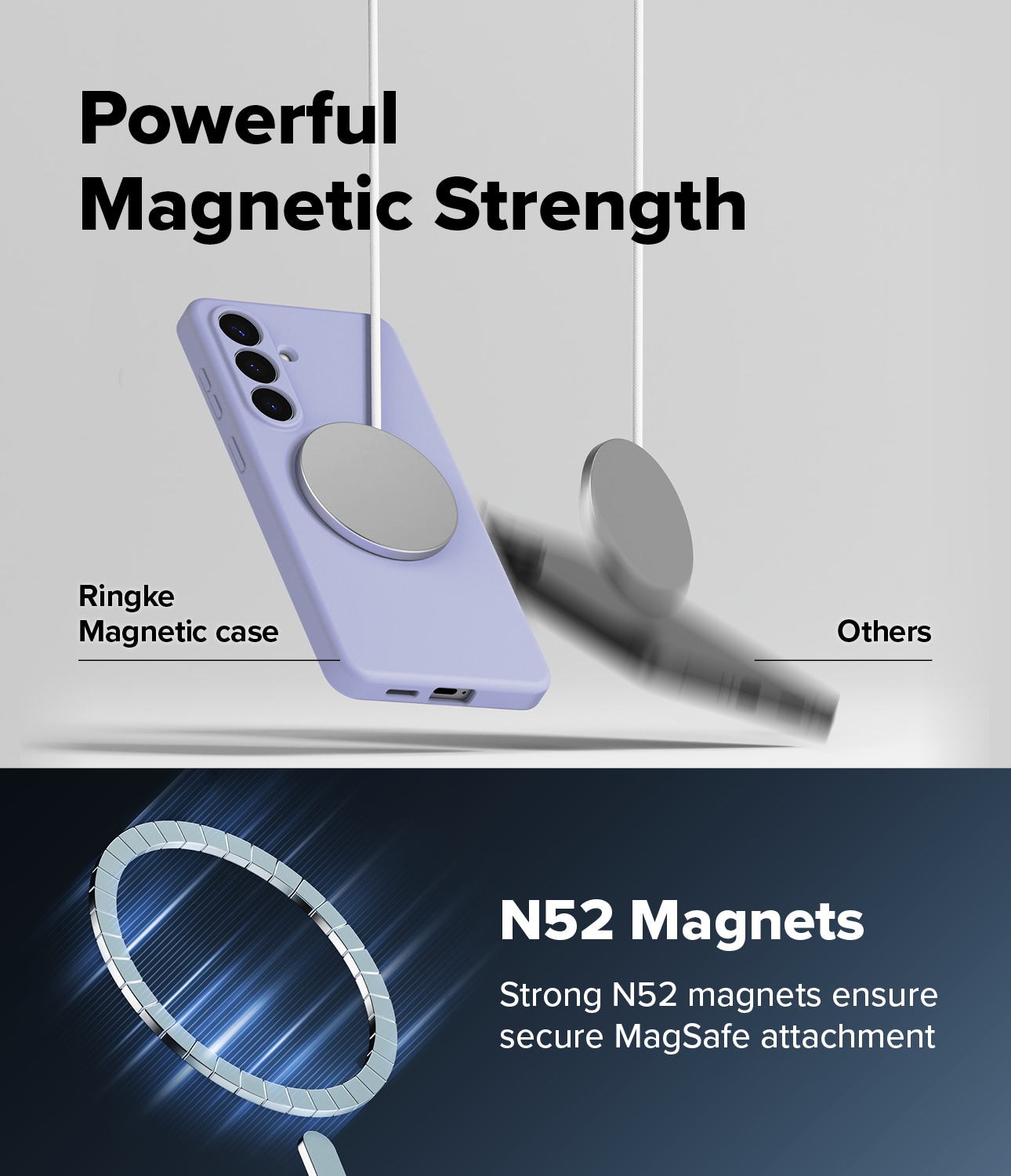 Stilrent silikonskal med MagSafe från Ringke till Samsung Galaxy S26 Plus. Skalet är stötdämpande för att skydda mot skador och MagSafe-stödet gör att du kan använda MagSafe-tillbehör och MagSafe-ladda med skalet på.