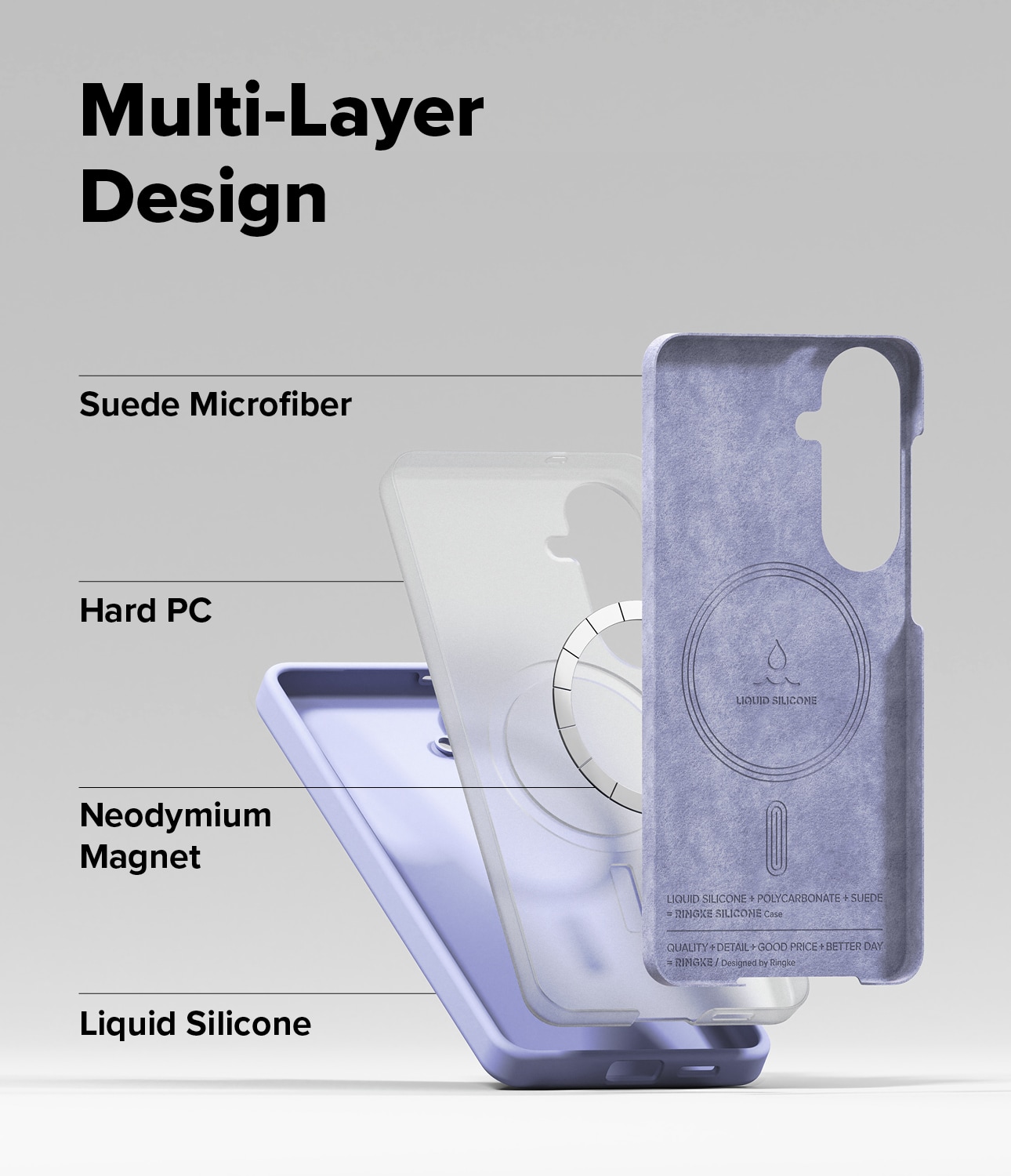 Det är tillverkat i tre lager för bästa skydd: utsida i slitstarkt och greppvänligt silikon, en kärna av hårdplast som skyddar mot stötar och fall, insida i mikrofiber som skyddar mot repor.