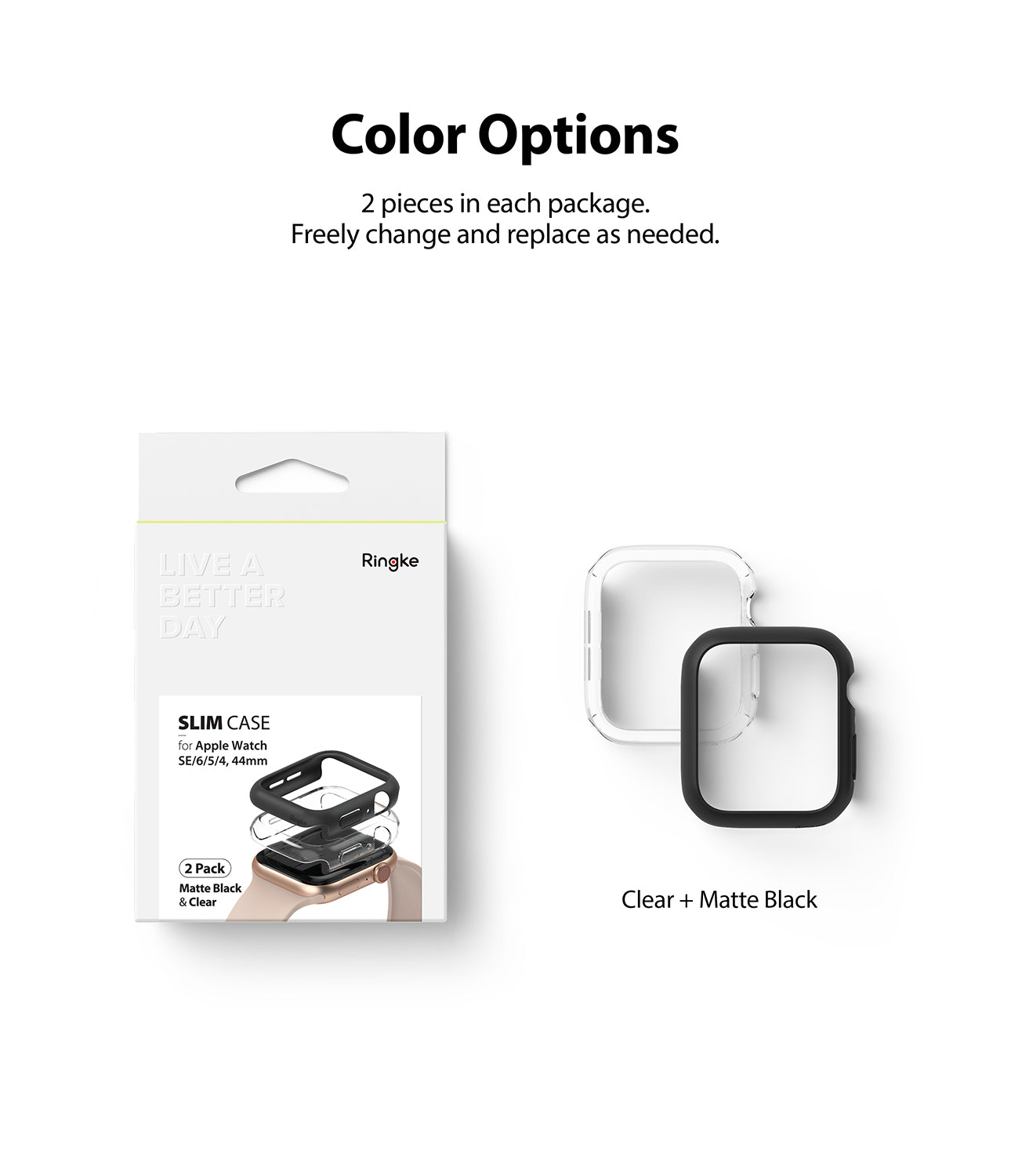 2-pack ultratunna skal från Ringke till Apple Watch SE 3 44mm. Ringke Slim Case håller din klocka skyddad trots att du nästan inte märker att du har ett skal på. Skalen är lätta och gör endast klockan lite över 0,8 millimeter tjockare.
