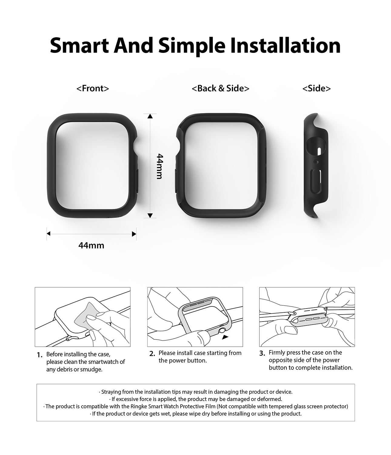 Skalen är perfekt utformade för klockan så att alla funktioner, knappar och laddning fungerar som vanligt. För extra skydd mot repor är kanterna runt skärmen upphöjda.