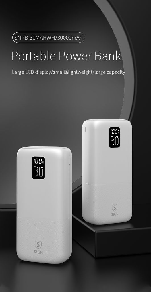 - Förpackningen innehåller 1x SiGN Powerbank 30 000 mAh och 1x Micro-USB-kabel, 0,25 m</p>