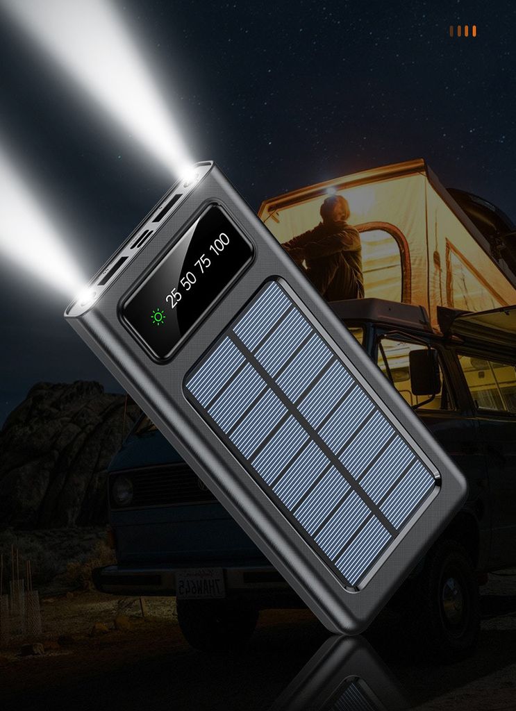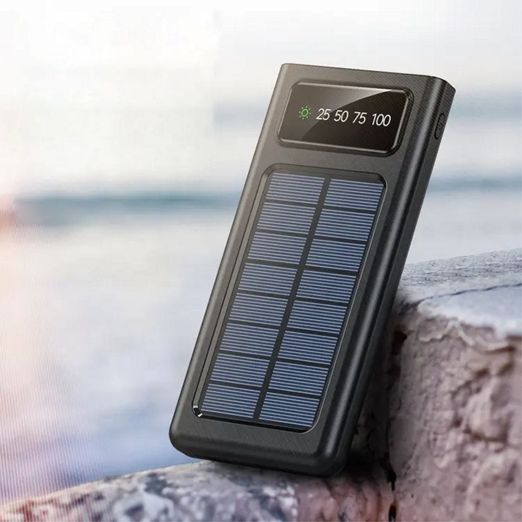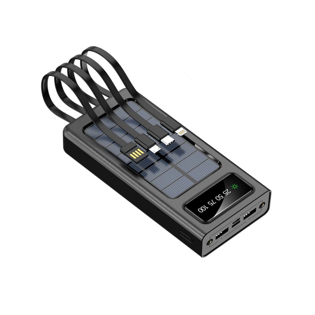 Solcell Powerbank med inbyggda kablar 20000mAh Svart